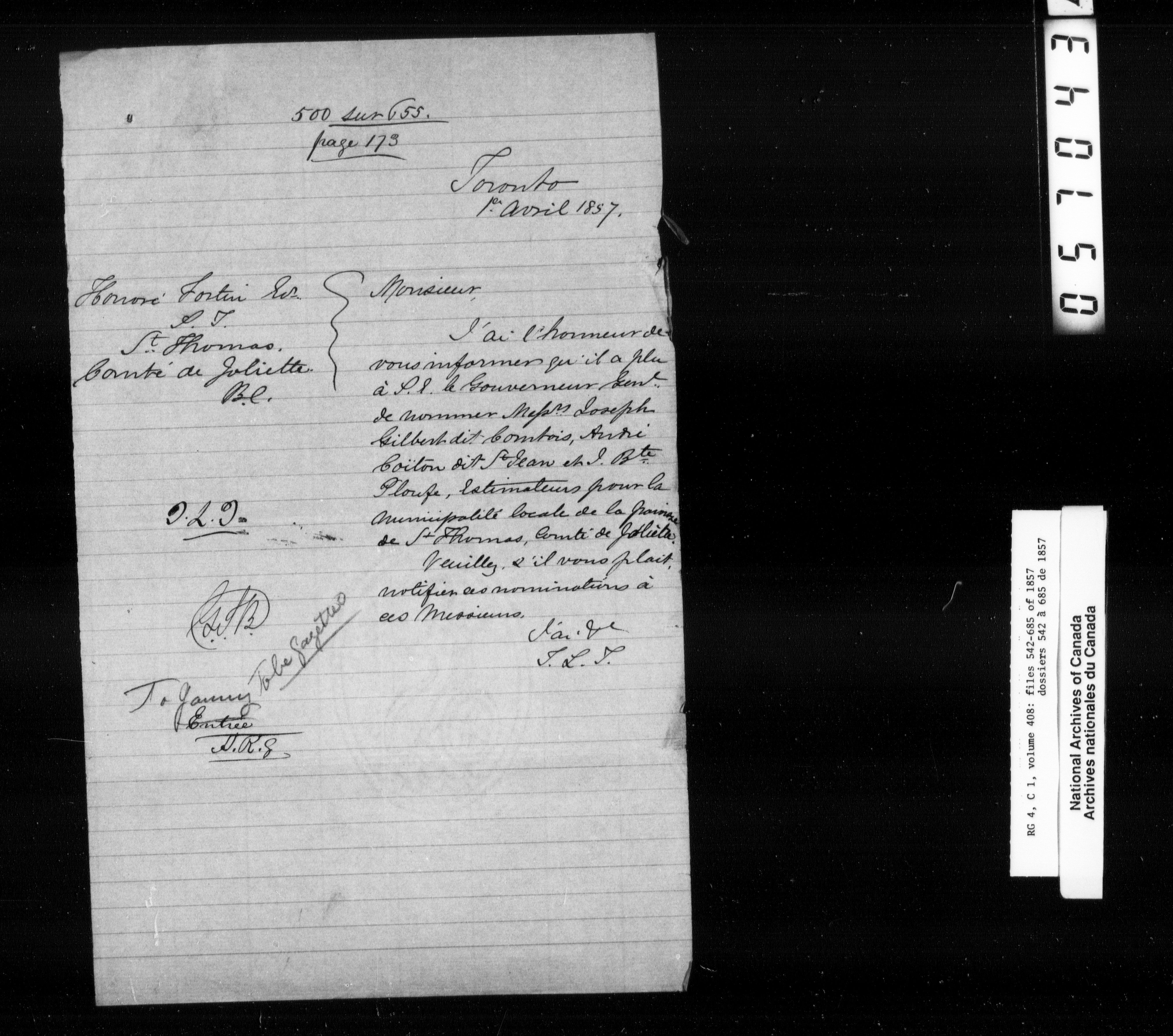 Canada East : Provincial Secretary numbered correspondence files, 1839-1867 - 2705