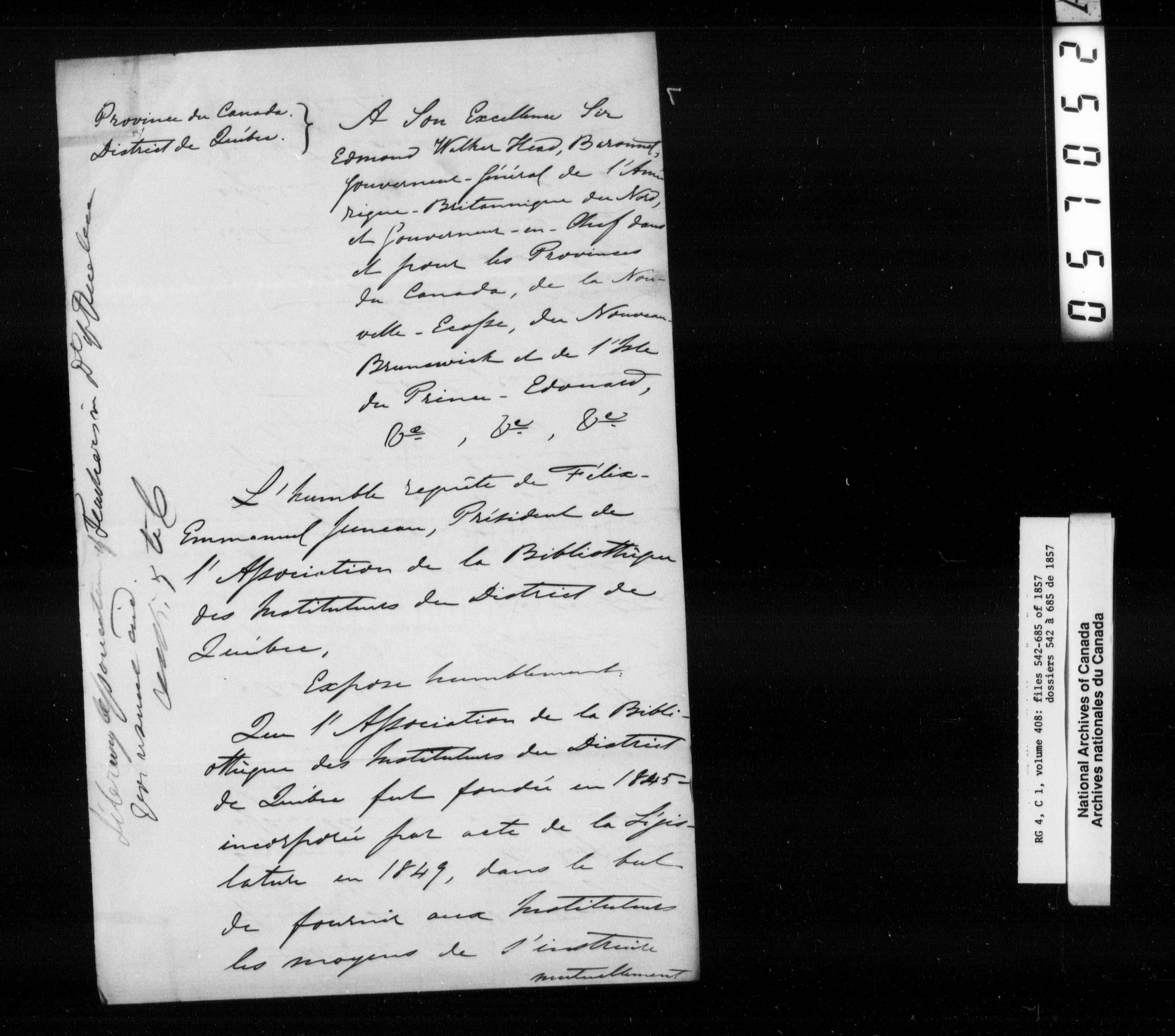 Canada East : Provincial Secretary numbered correspondence files, 1839-1867 - 2705