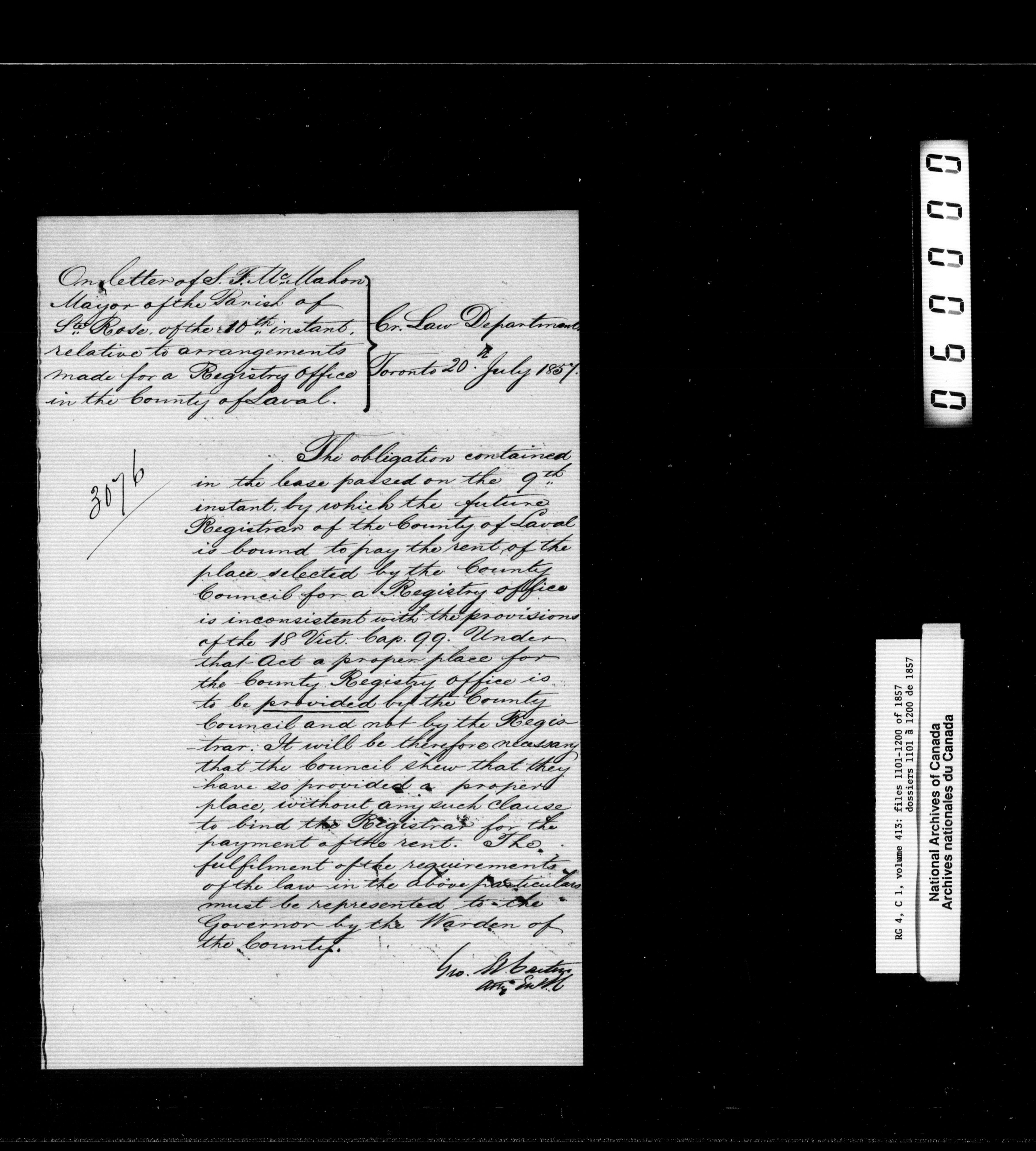 Canada East : Provincial Secretary numbered correspondence files, 1839-1867 - 2707
