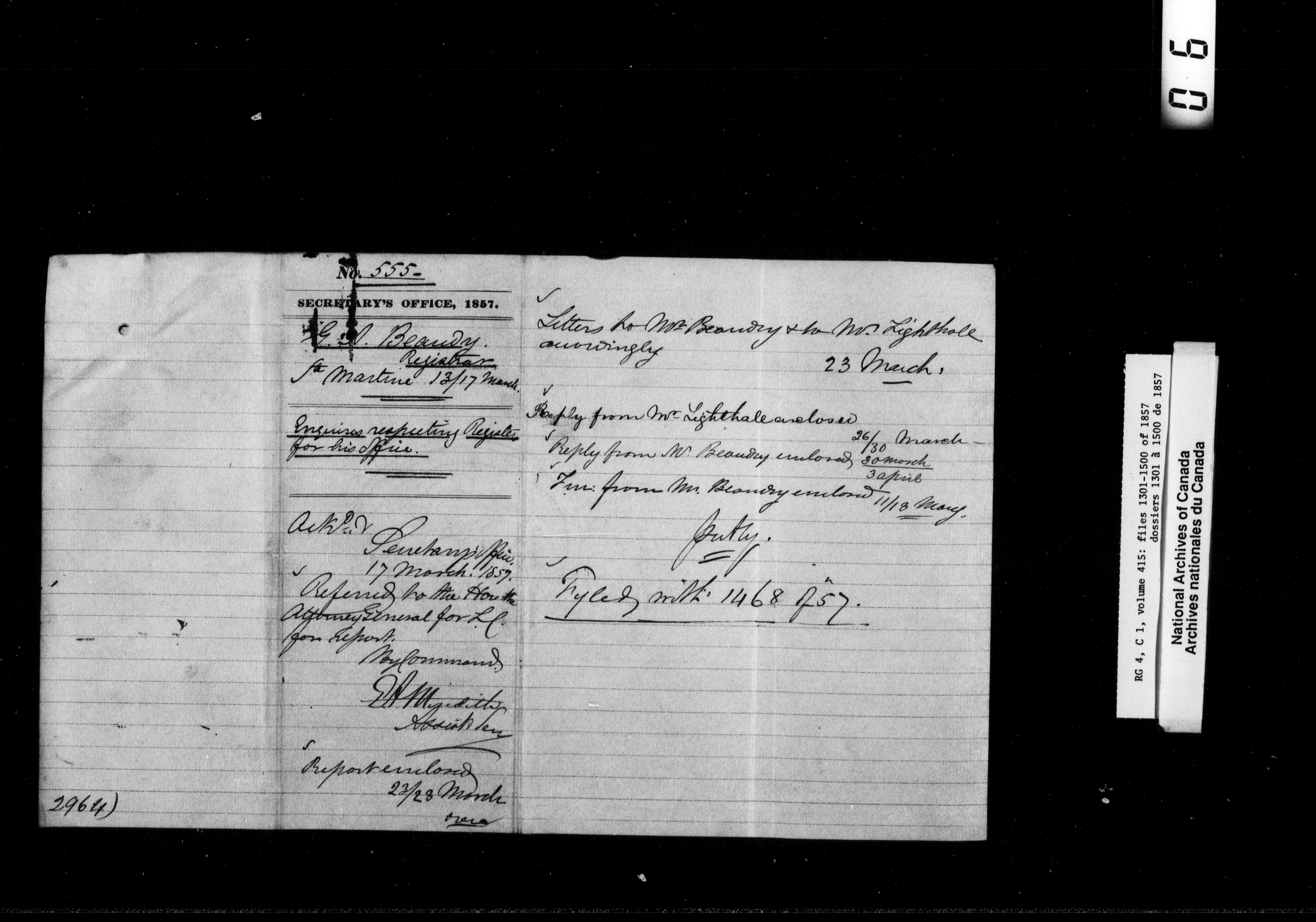 Canada East : Provincial Secretary numbered correspondence files, 1839-1867 - 2708