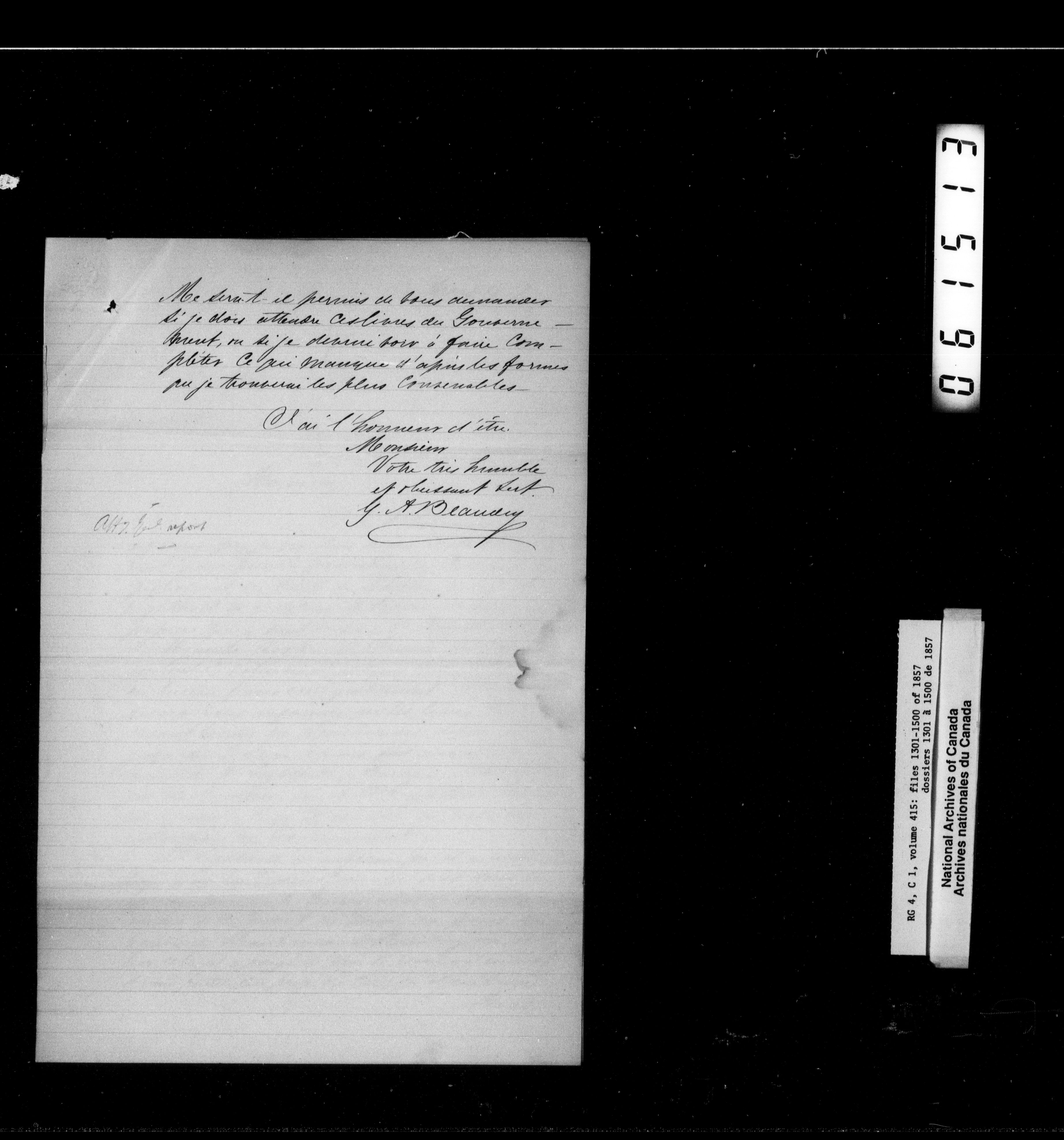 Canada East : Provincial Secretary numbered correspondence files, 1839-1867 - 2708