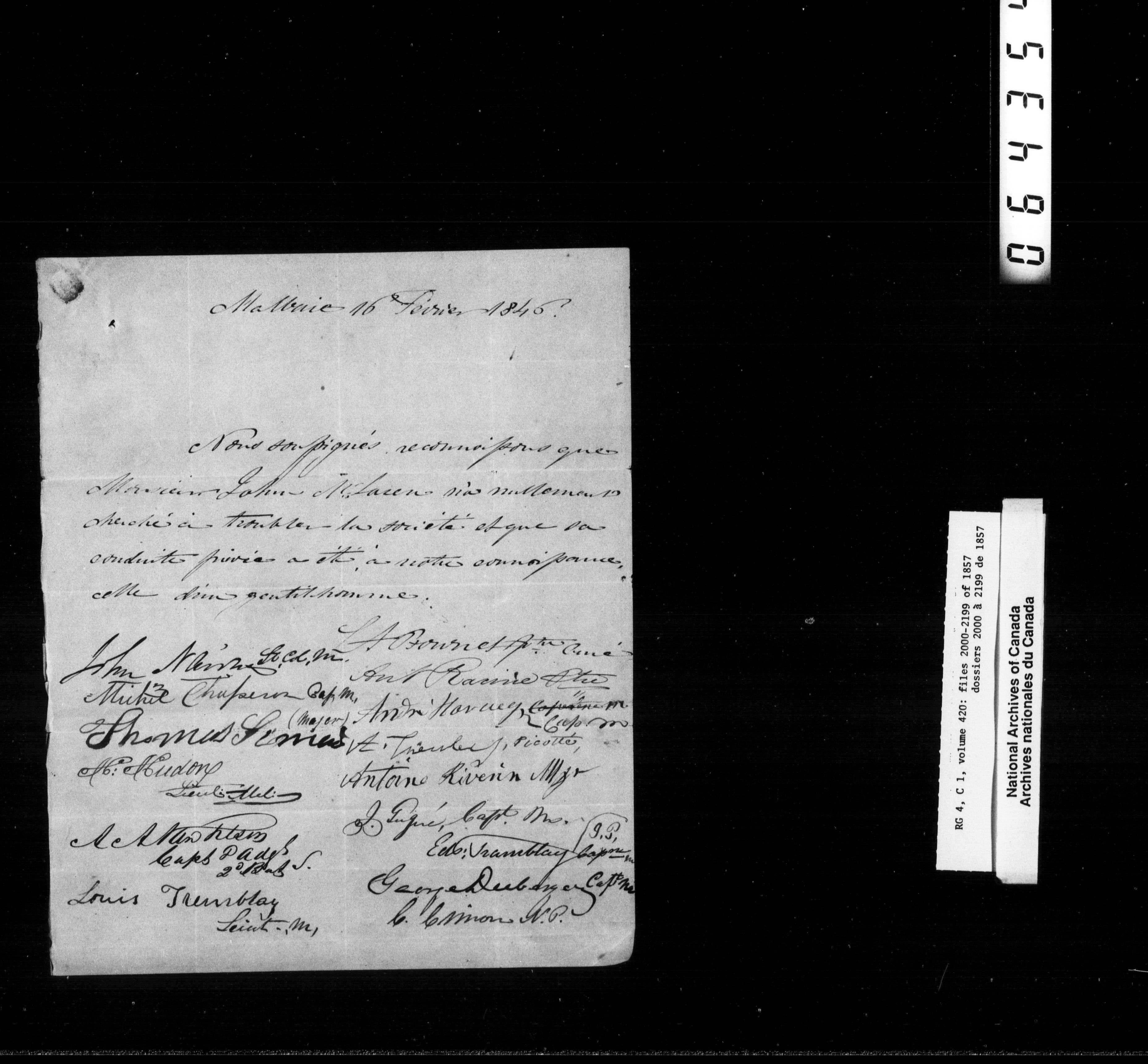Canada East : Provincial Secretary numbered correspondence files, 1839-1867 - 2709