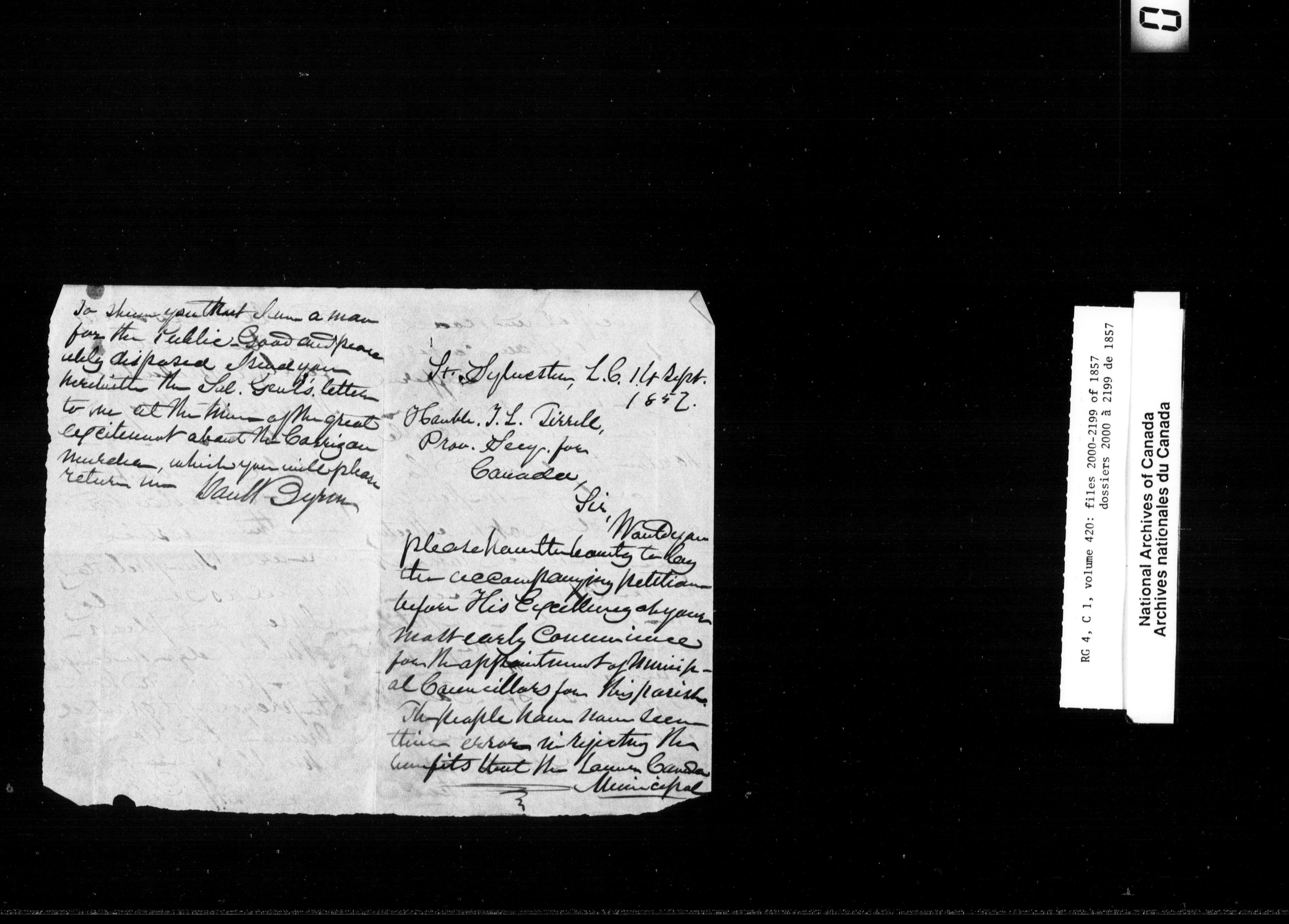 Canada East : Provincial Secretary numbered correspondence files, 1839-1867 - 2709