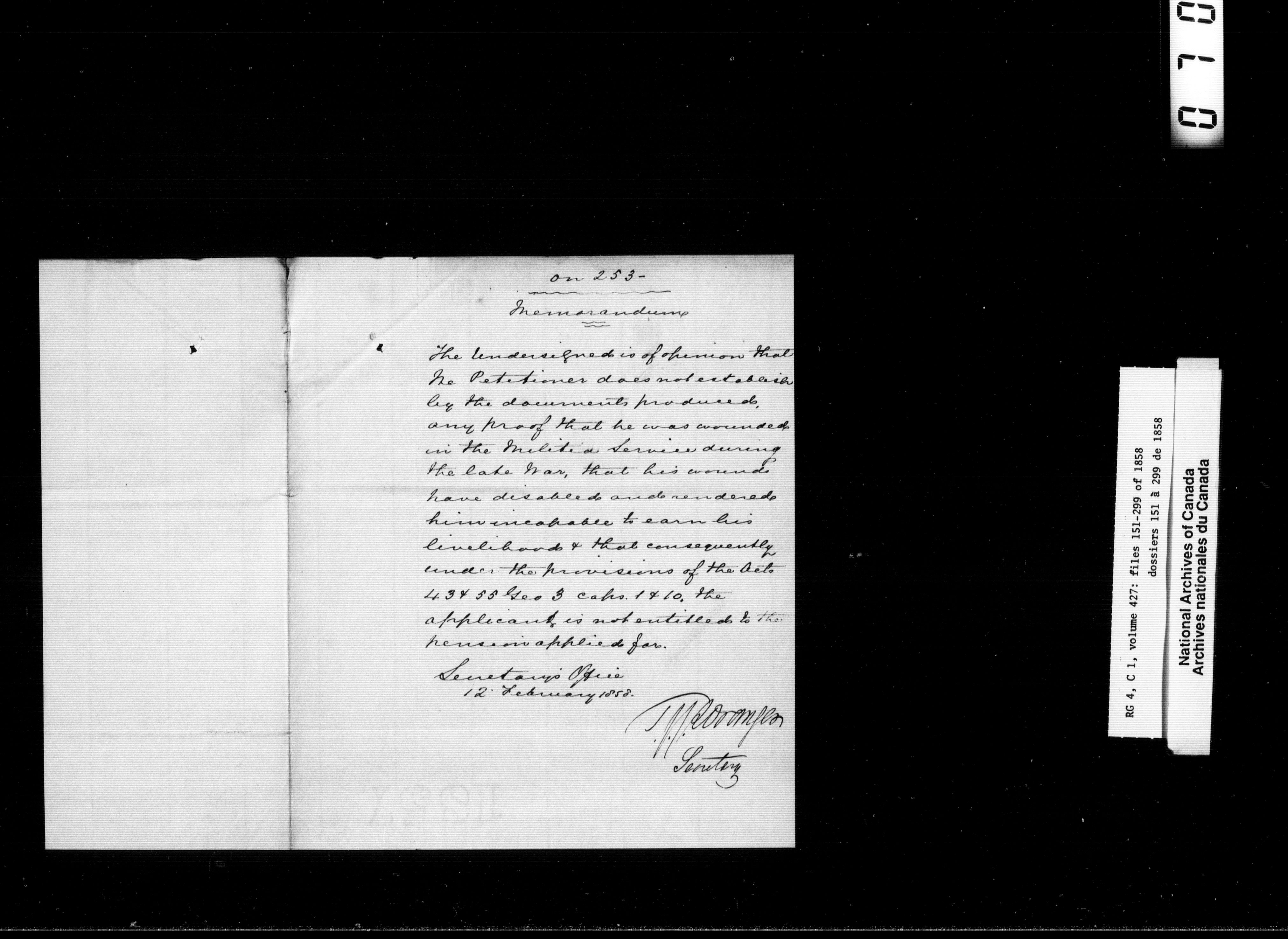 Canada East : Provincial Secretary numbered correspondence files, 1839-1867 - 2713