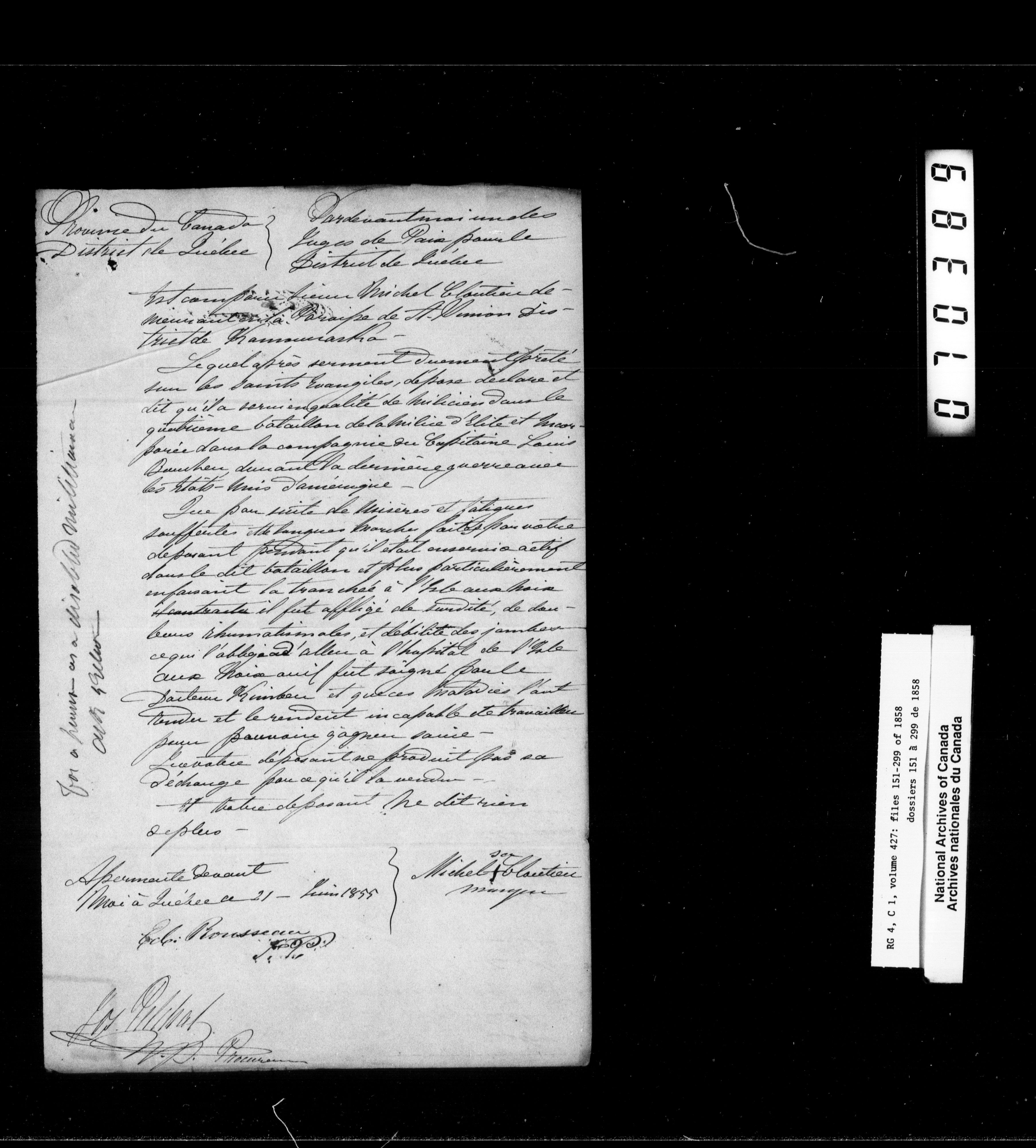 Canada East : Provincial Secretary numbered correspondence files, 1839-1867 - 2713