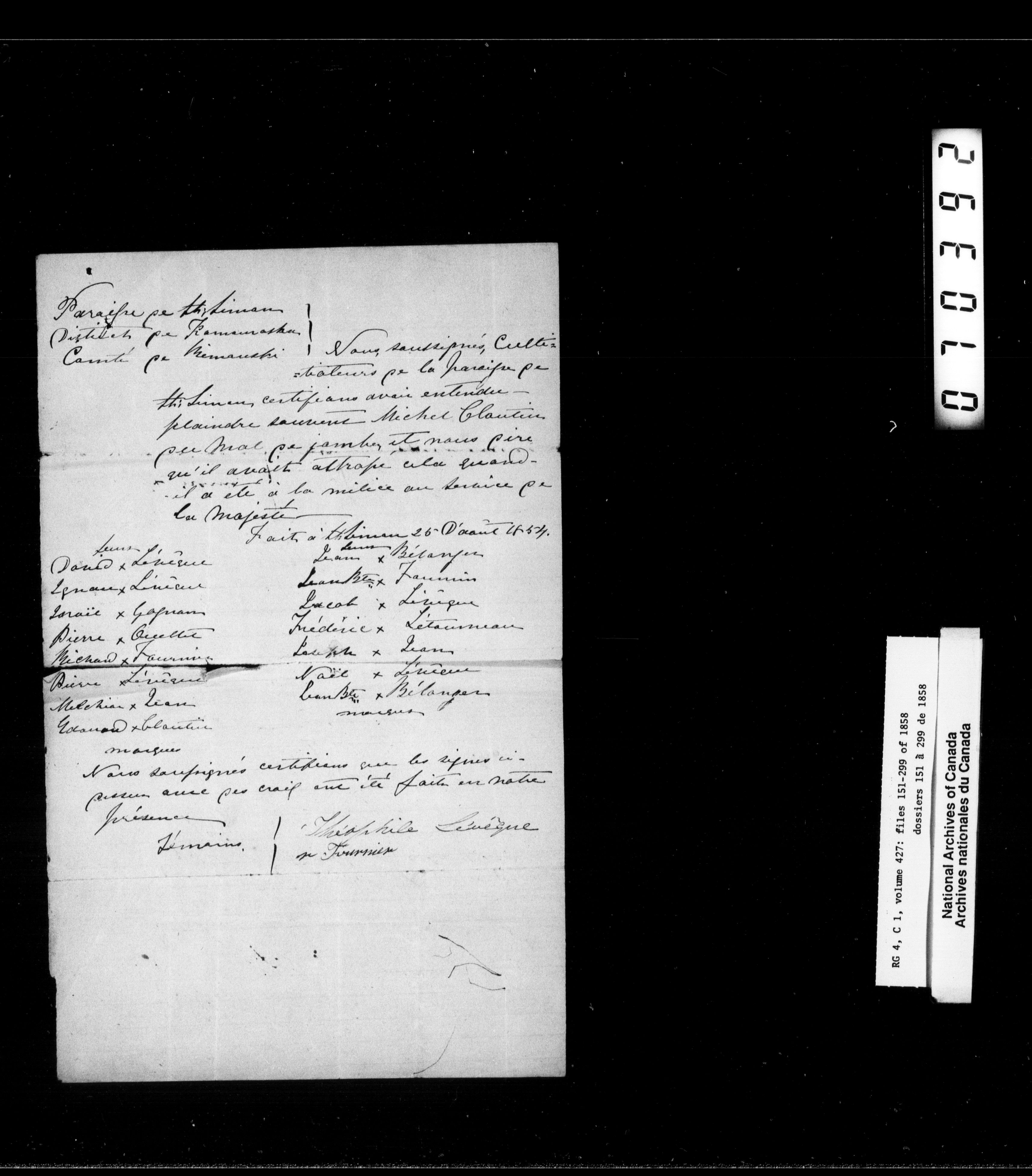 Canada East : Provincial Secretary numbered correspondence files, 1839-1867 - 2713