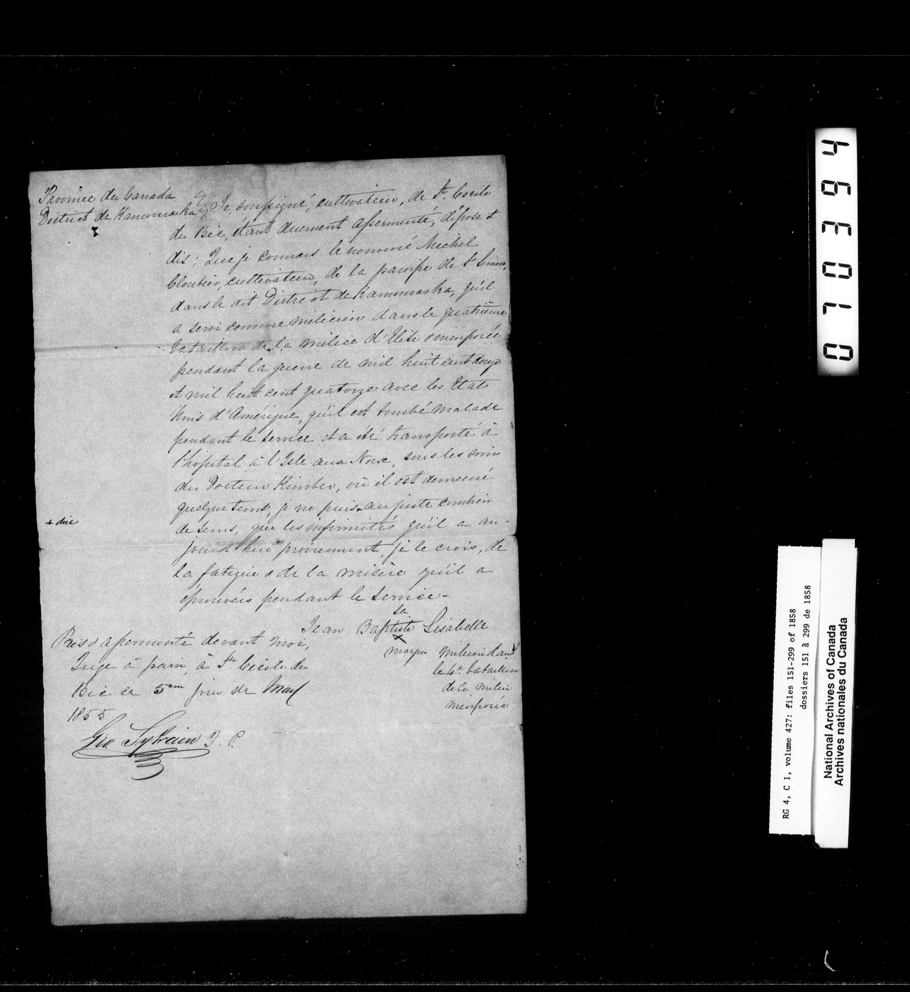 Canada East : Provincial Secretary numbered correspondence files, 1839-1867 - 2713