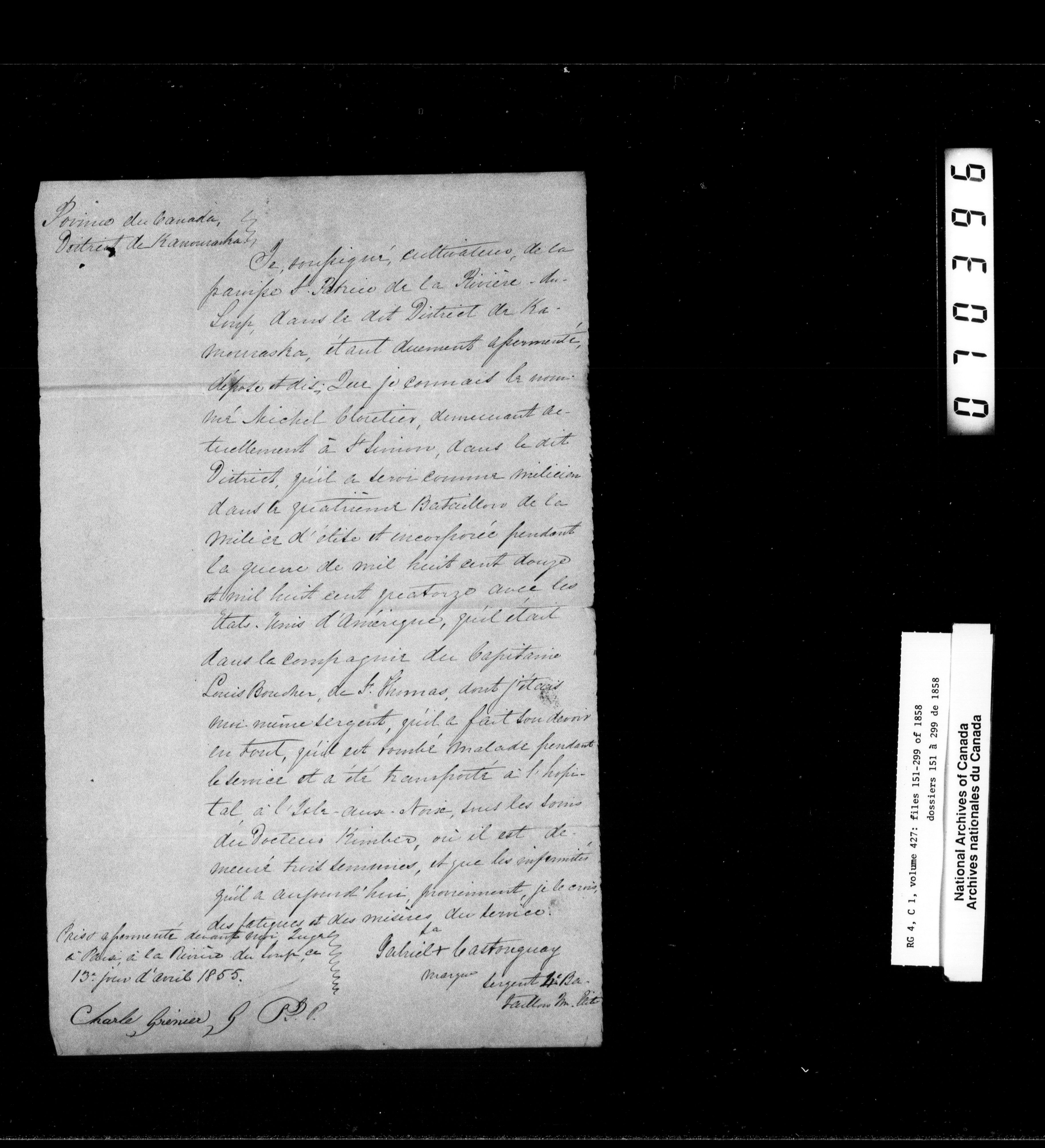 Canada East : Provincial Secretary numbered correspondence files, 1839-1867 - 2713