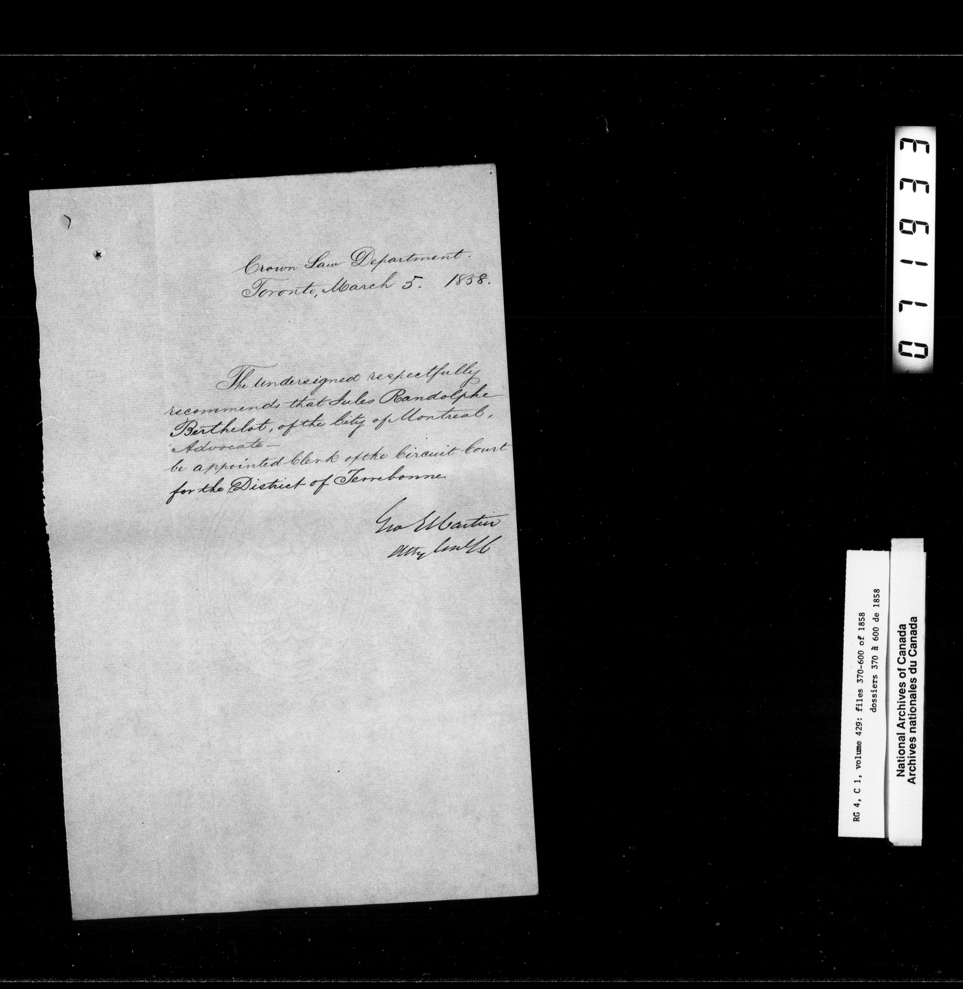 Canada East : Provincial Secretary numbered correspondence files, 1839-1867 - 2715