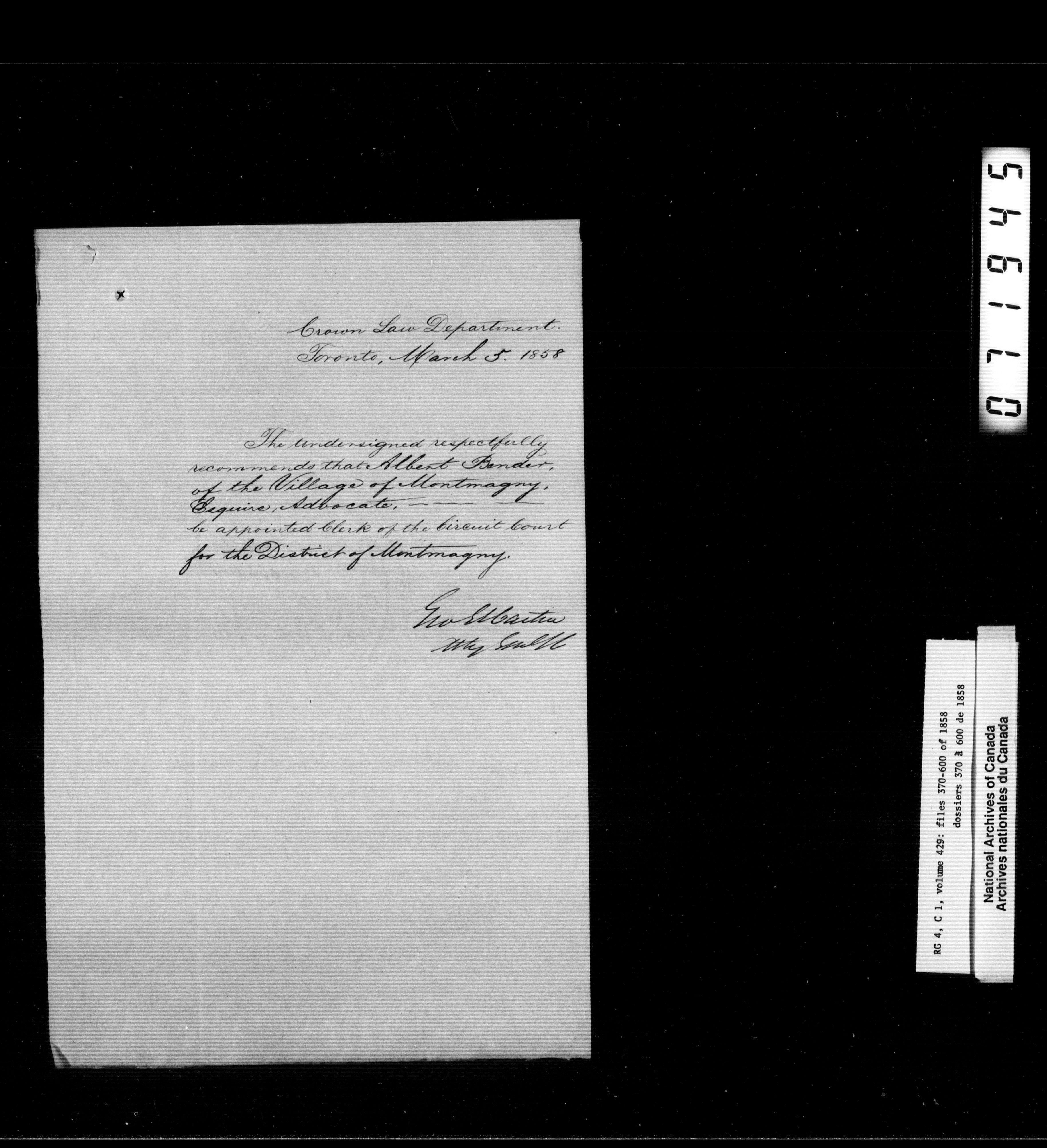 Canada East : Provincial Secretary numbered correspondence files, 1839-1867 - 2715