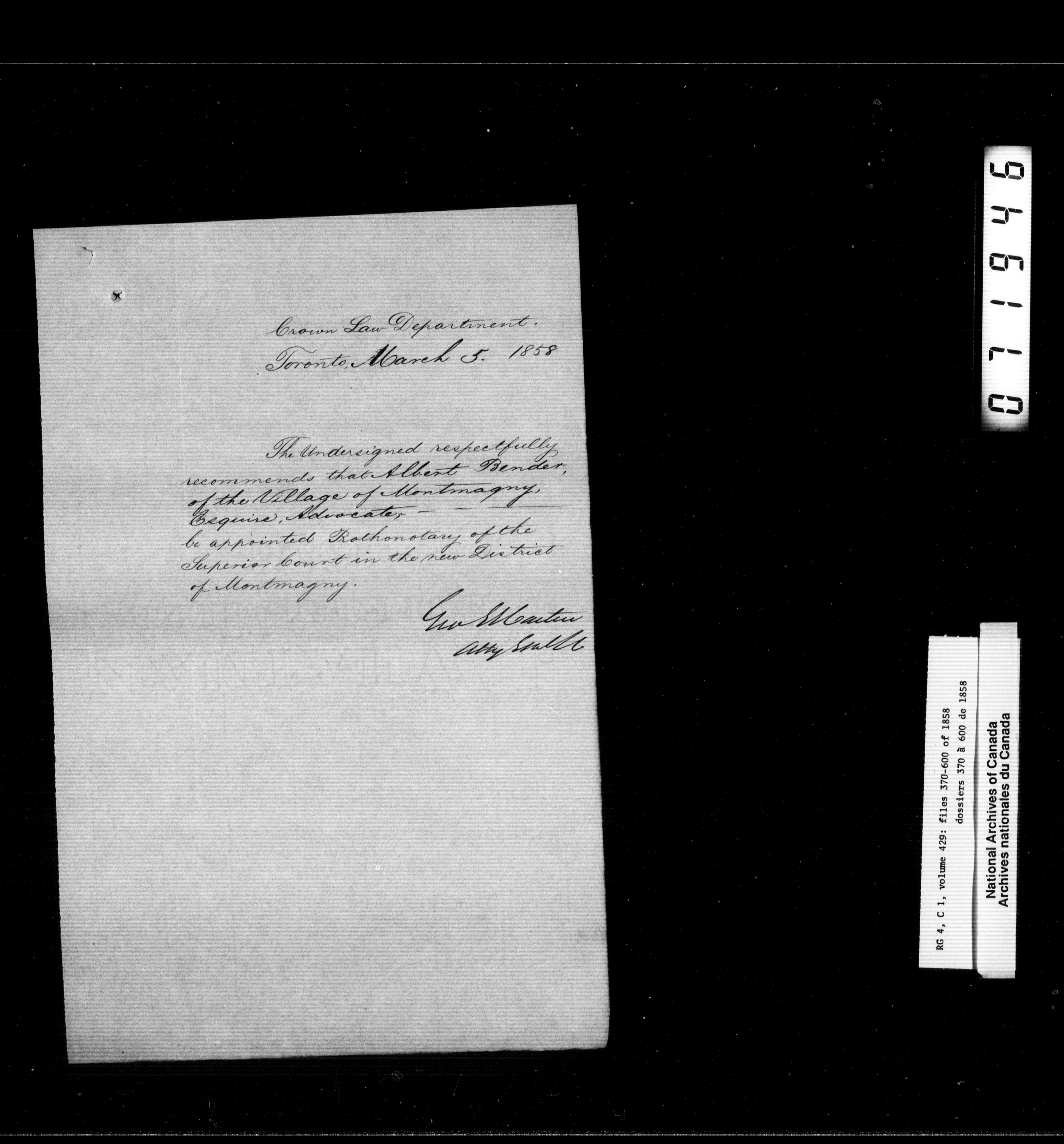 Canada East : Provincial Secretary numbered correspondence files, 1839-1867 - 2715