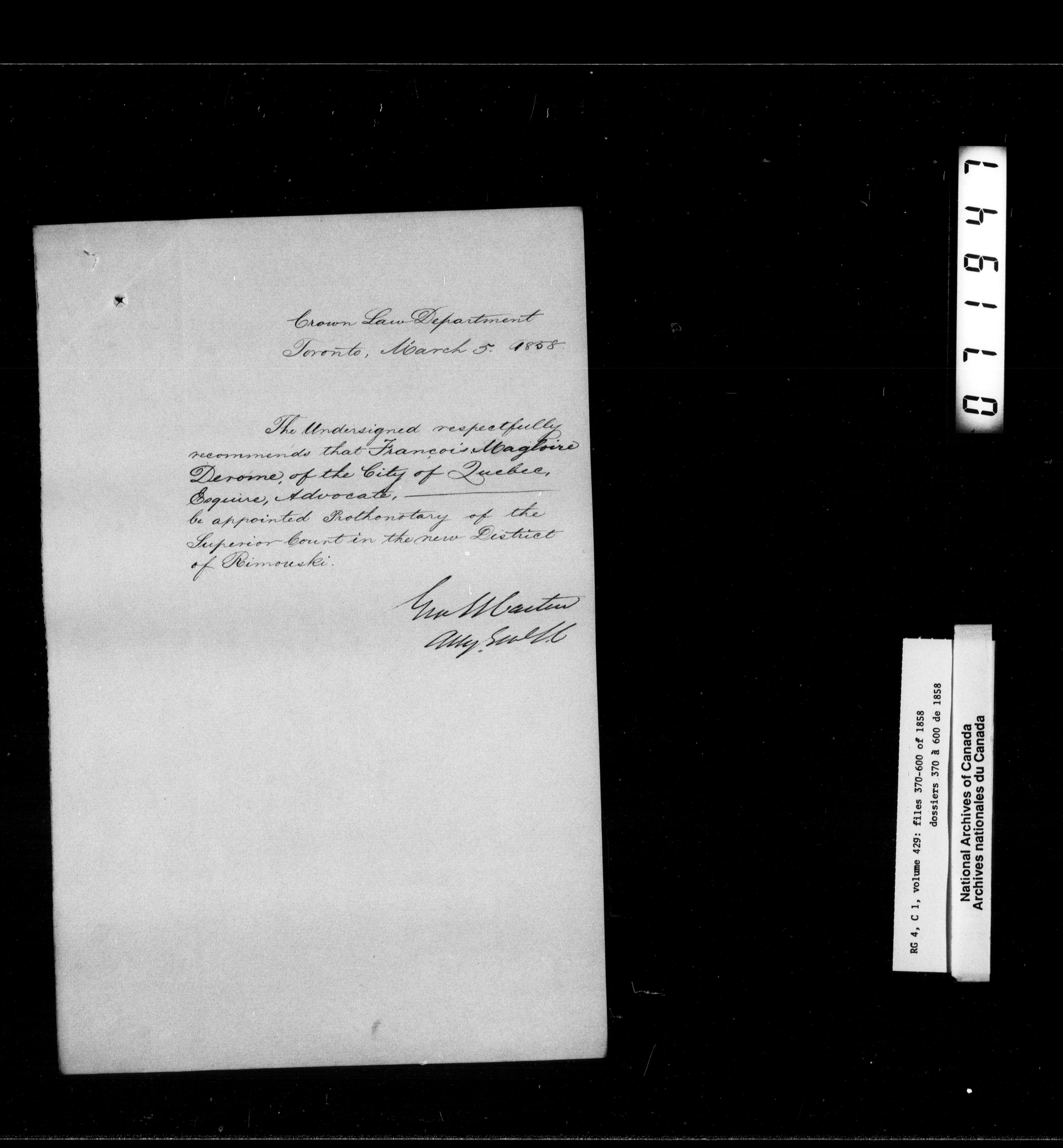 Canada East : Provincial Secretary numbered correspondence files, 1839-1867 - 2715