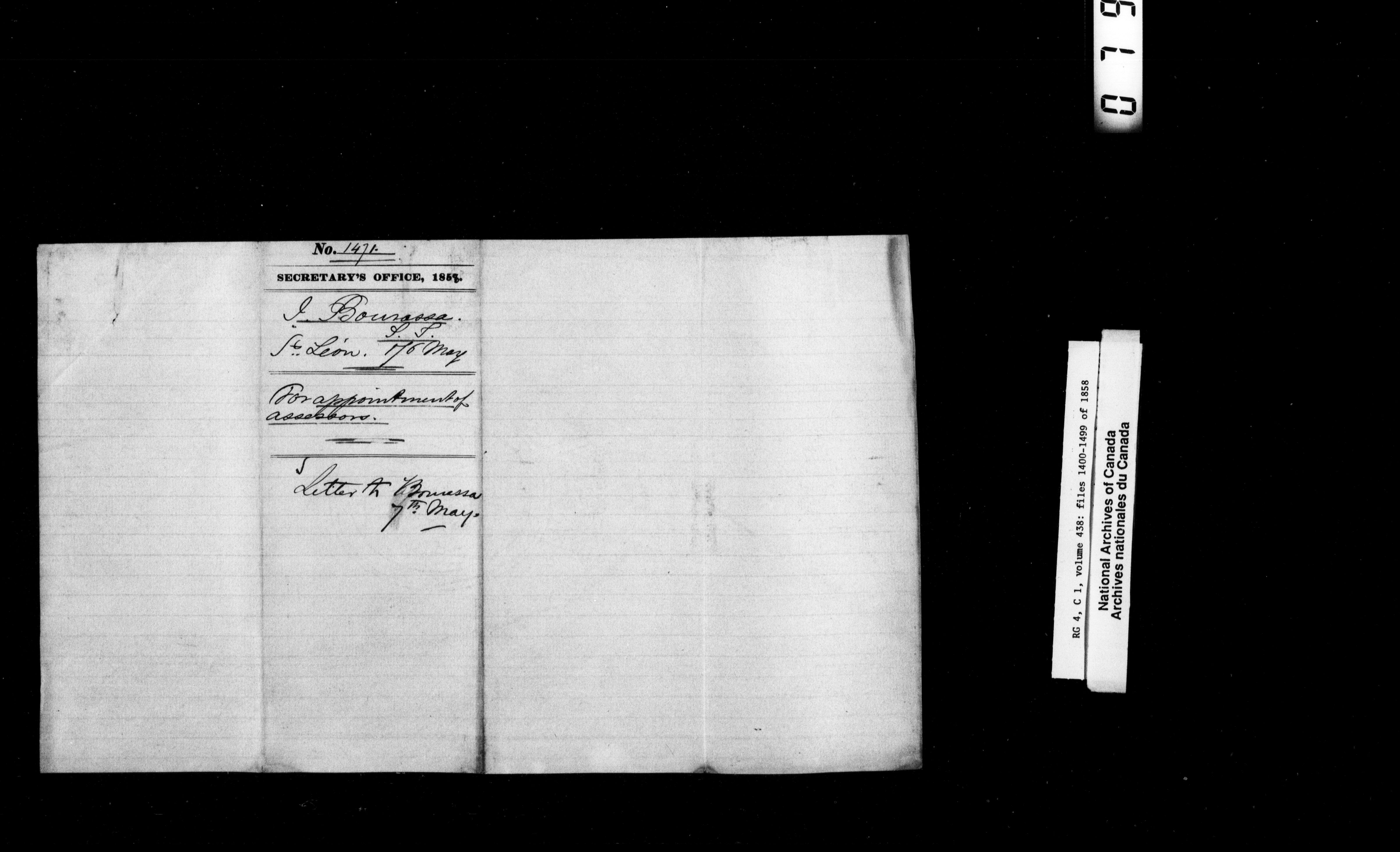 Canada East : Provincial Secretary numbered correspondence files, 1839-1867 - 2719