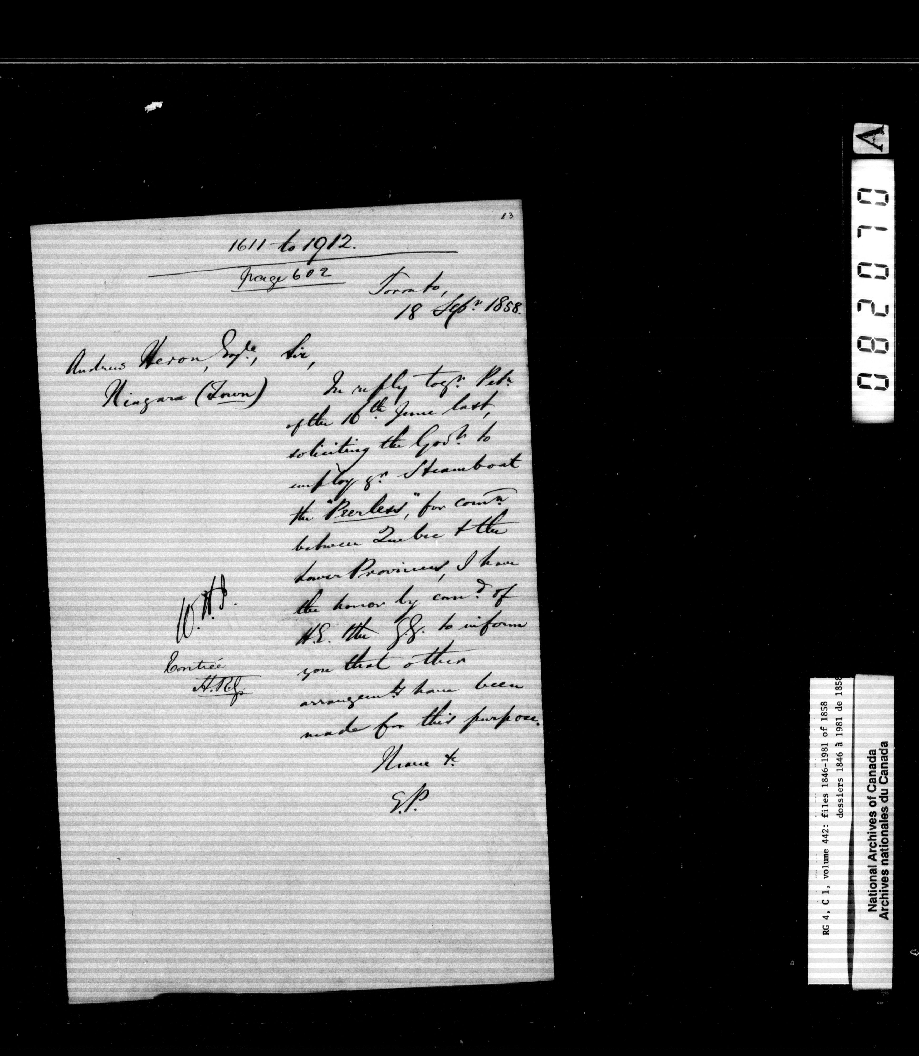 Canada East : Provincial Secretary numbered correspondence files, 1839-1867 - 2721