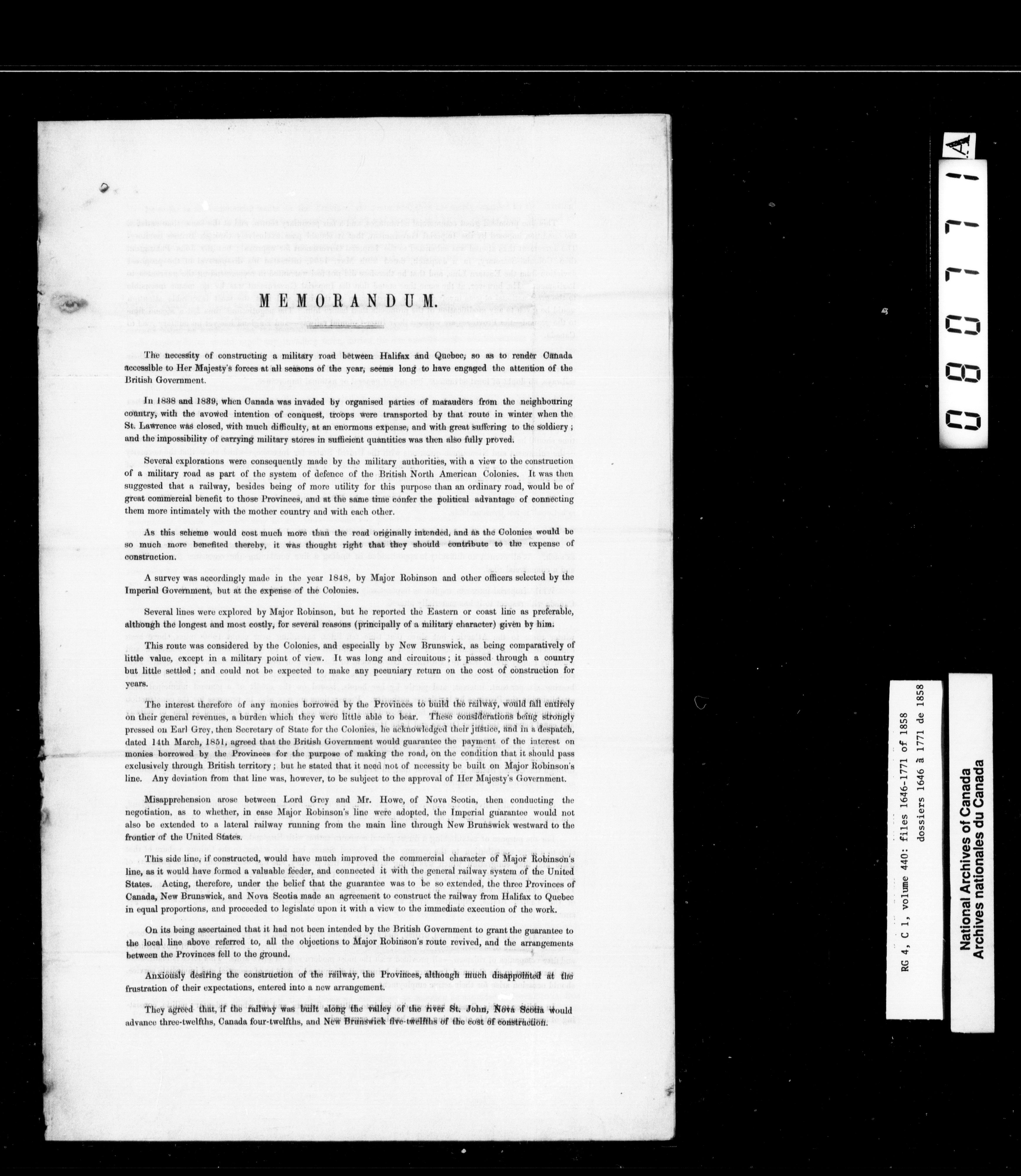 Canada East : Provincial Secretary numbered correspondence files, 1839-1867 - 2721