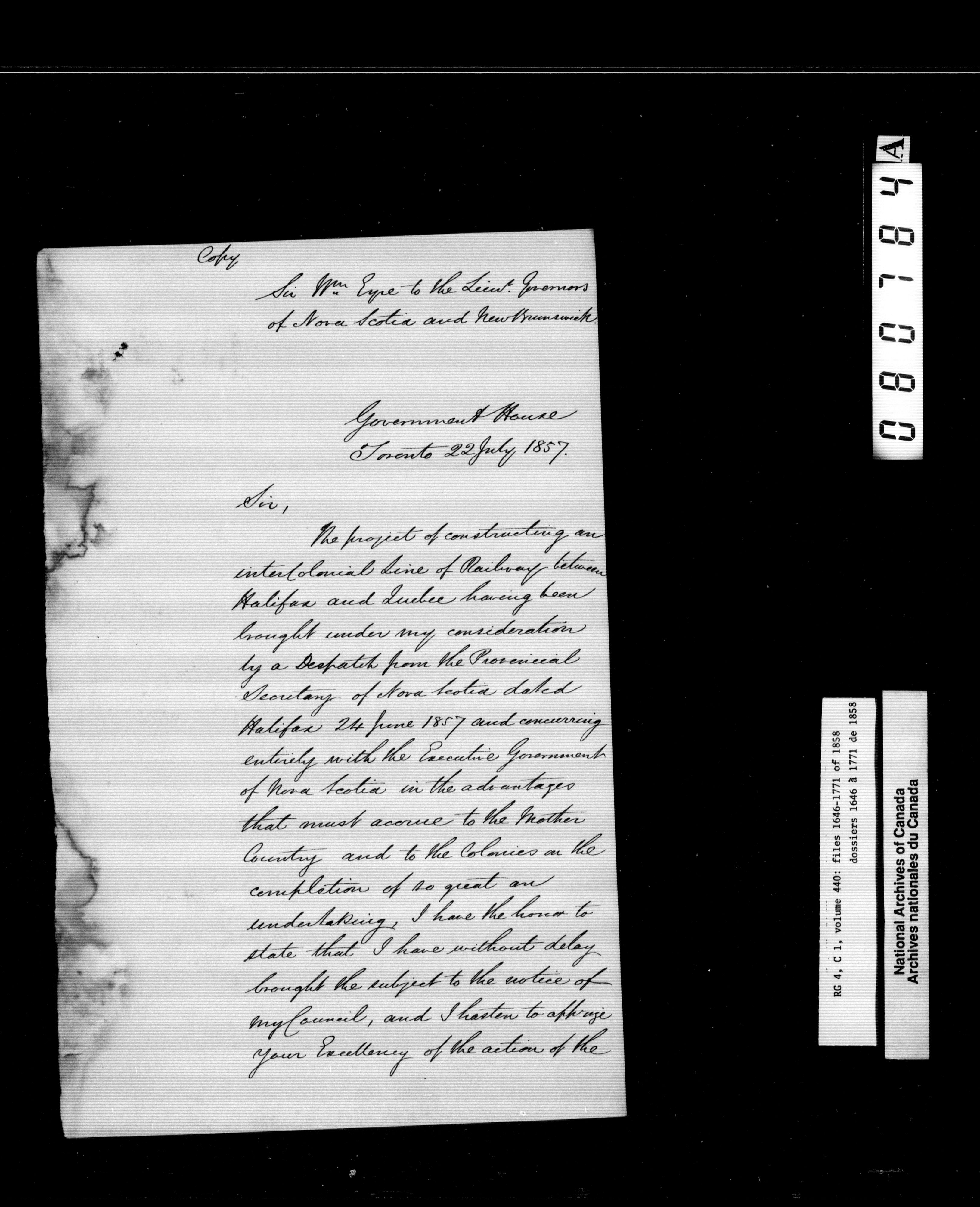 Canada East : Provincial Secretary numbered correspondence files, 1839-1867 - 2721