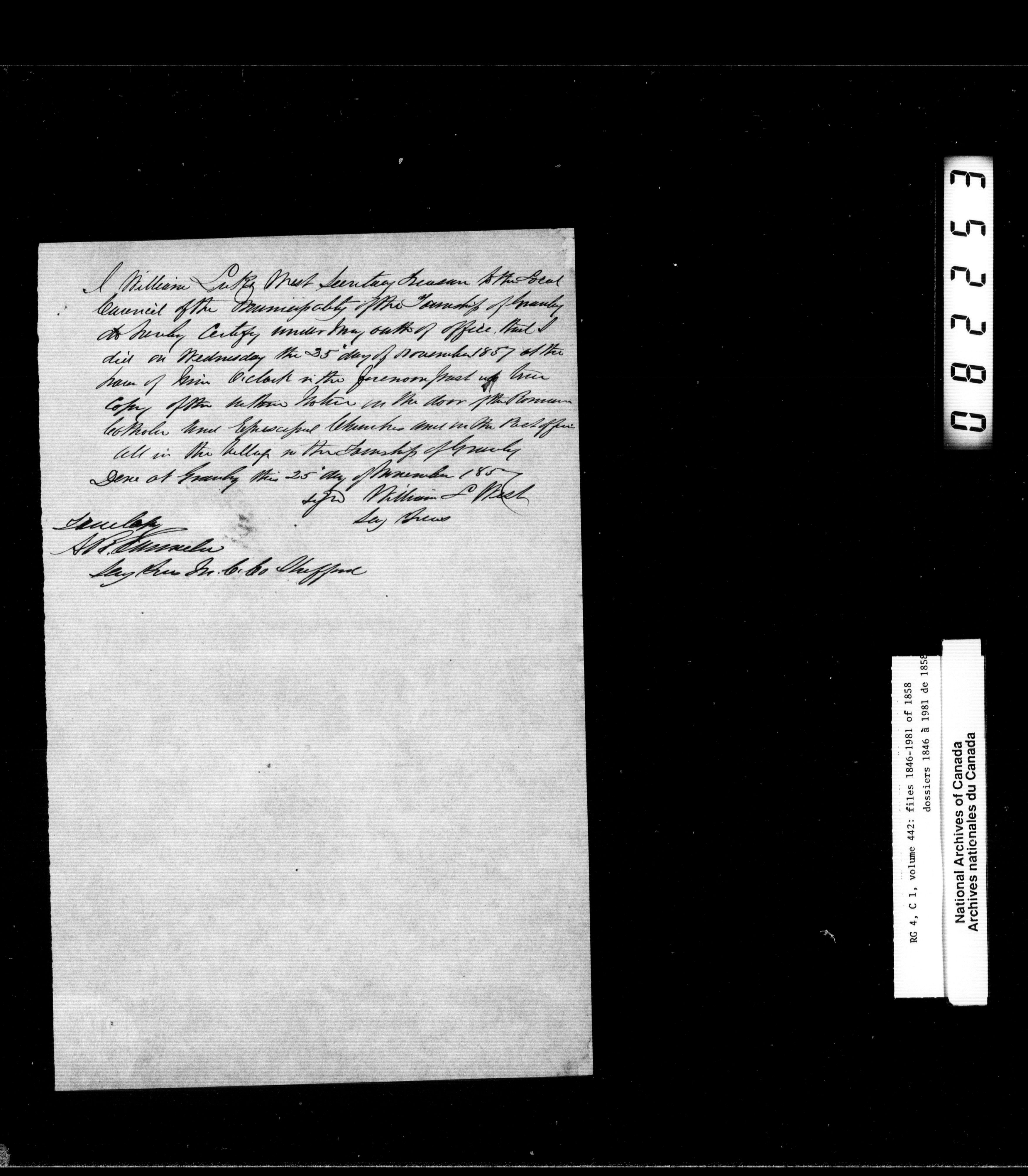 Canada East : Provincial Secretary numbered correspondence files, 1839-1867 - 2722