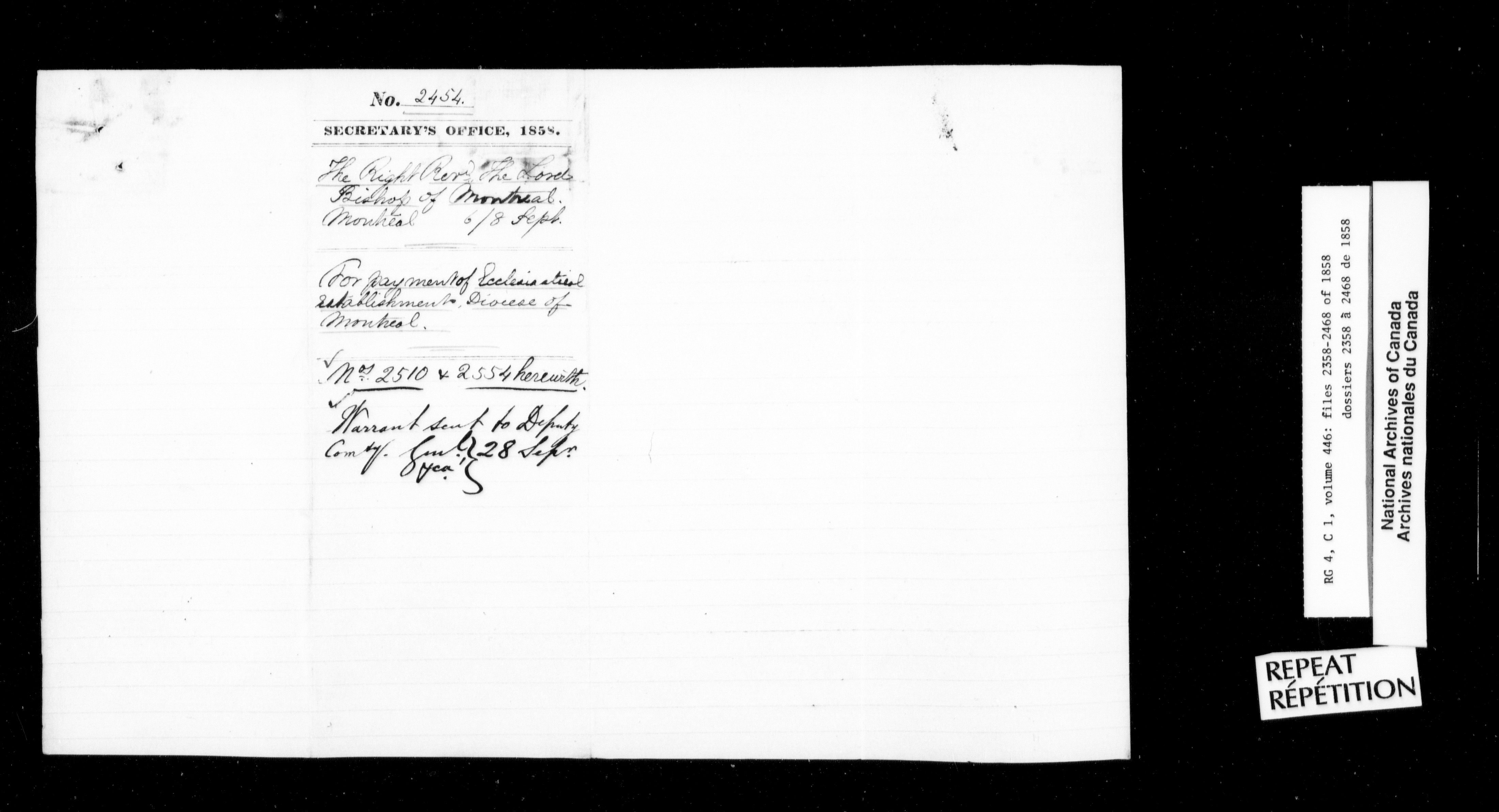 Canada East : Provincial Secretary numbered correspondence files, 1839-1867 - 2724