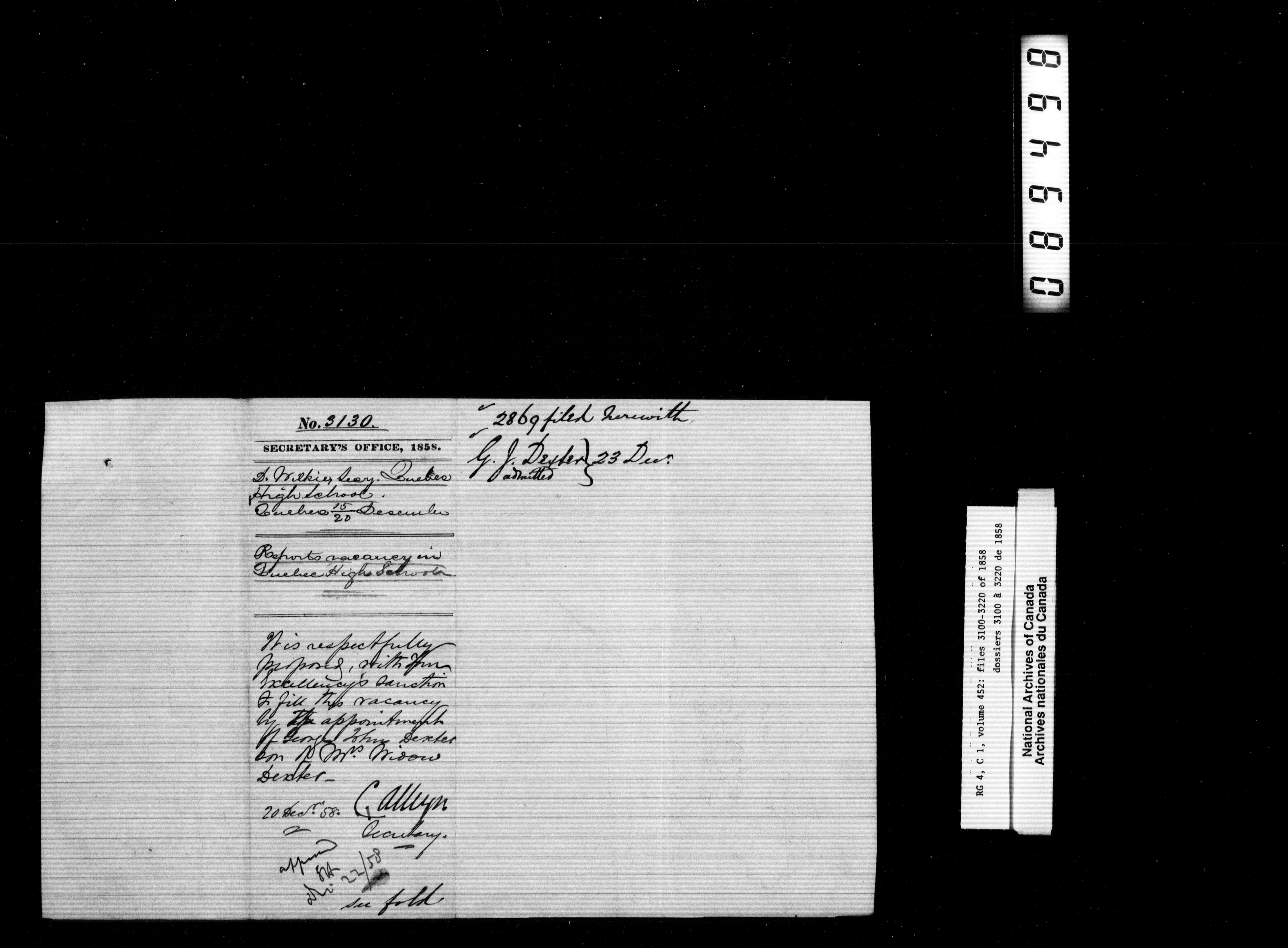 Canada East : Provincial Secretary numbered correspondence files, 1839-1867 - 2726