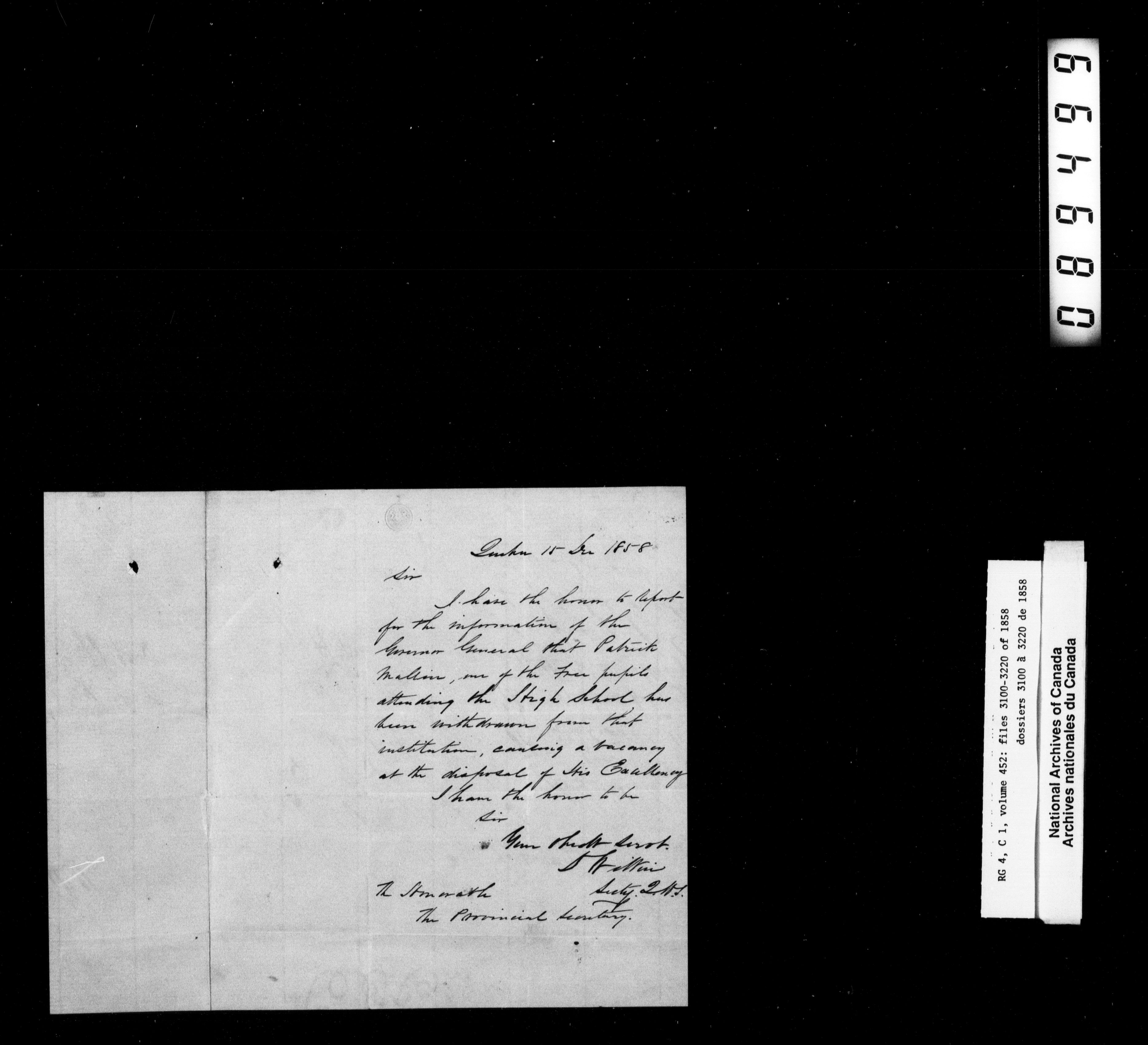 Canada East : Provincial Secretary numbered correspondence files, 1839-1867 - 2726