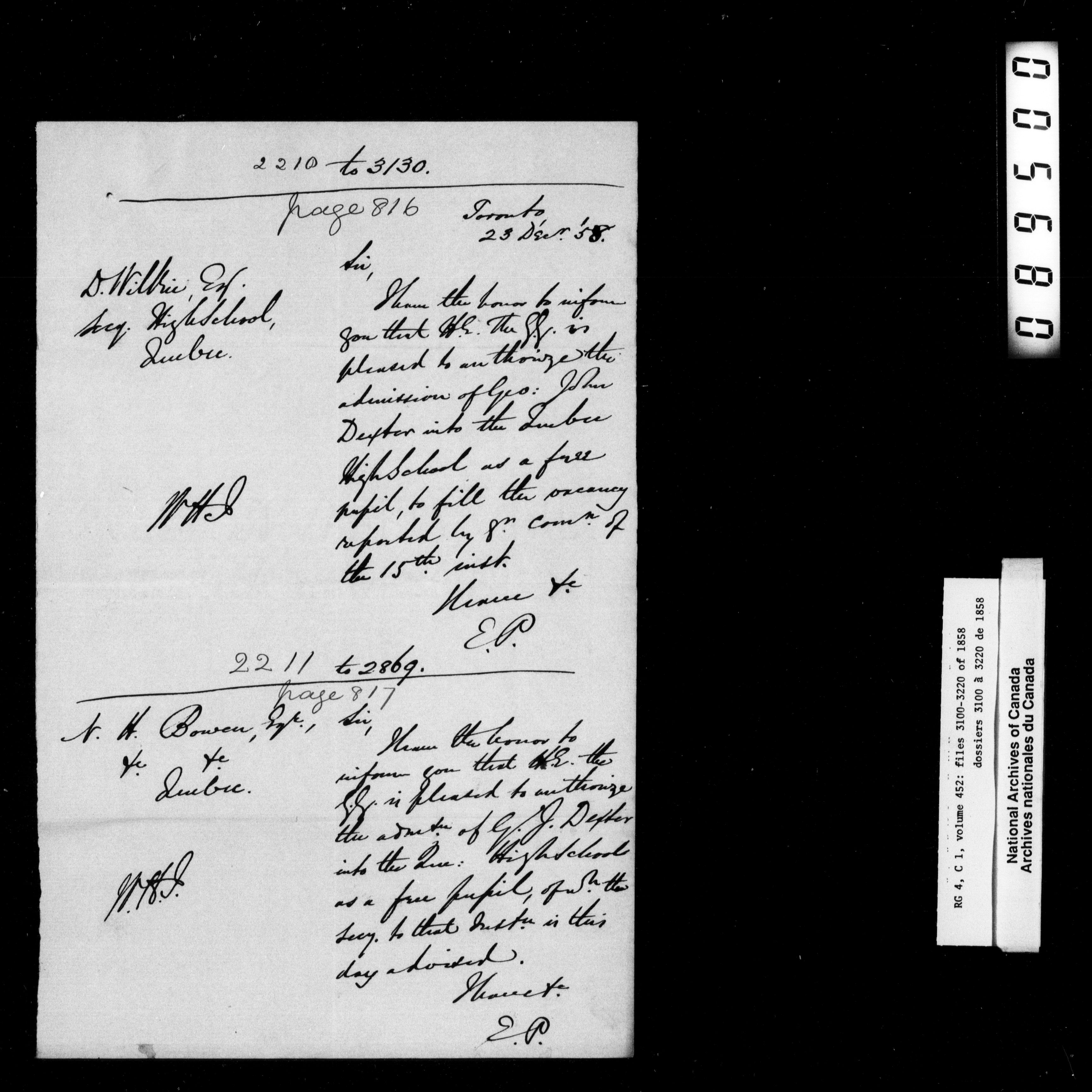 Canada East : Provincial Secretary numbered correspondence files, 1839-1867 - 2726