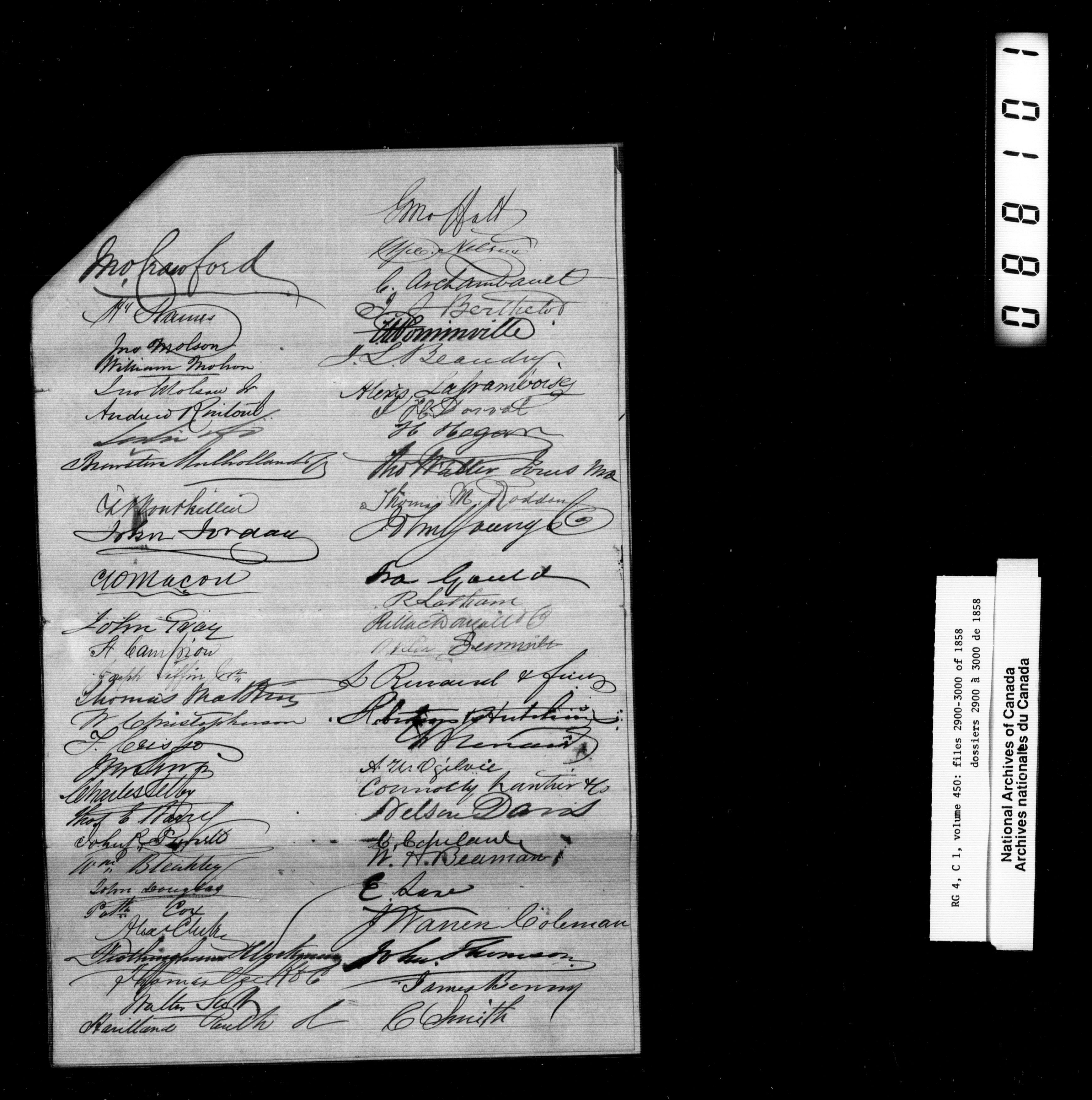 Canada East : Provincial Secretary numbered correspondence files, 1839-1867 - 2726