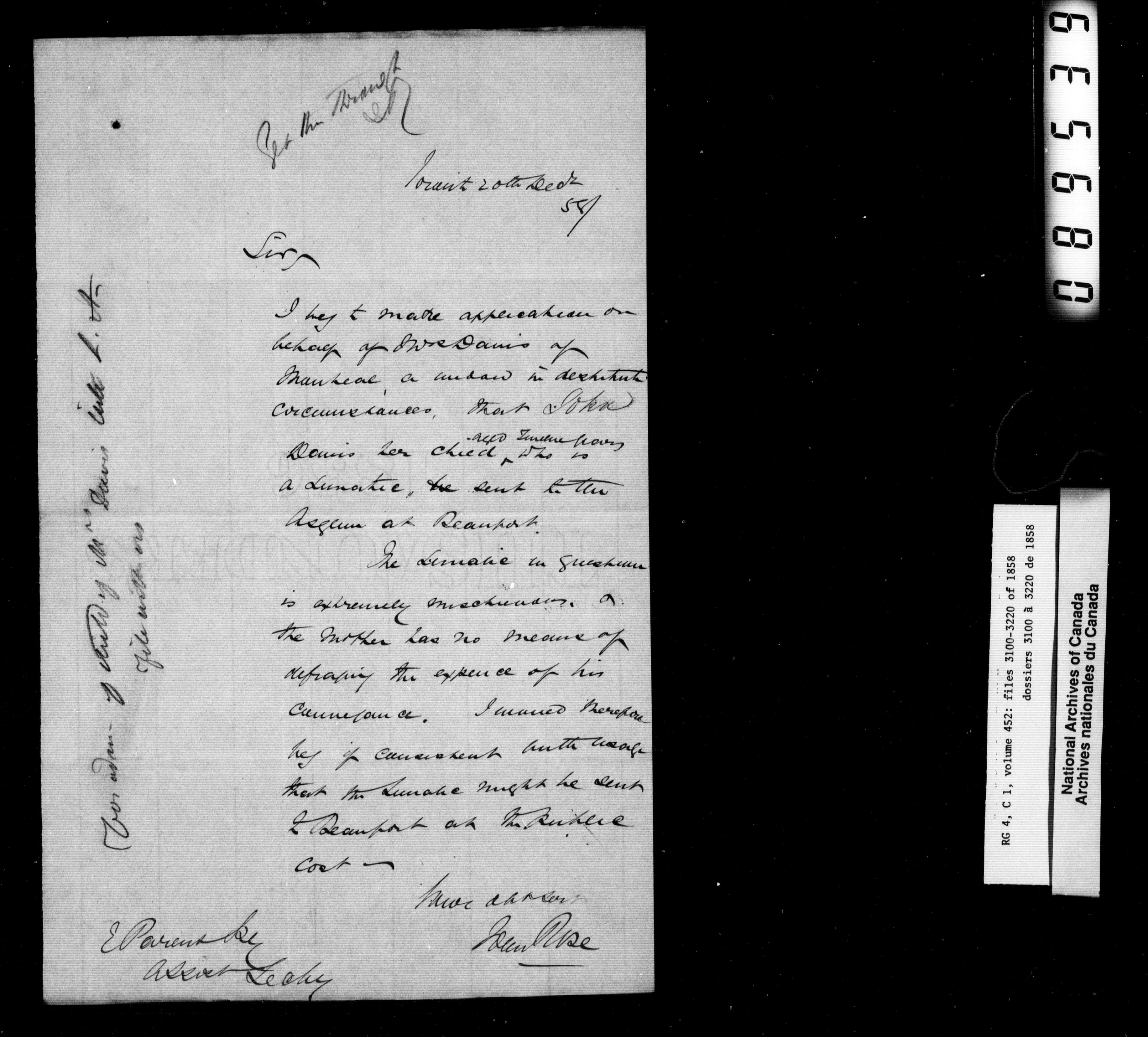 Canada East : Provincial Secretary numbered correspondence files, 1839-1867 : H-2727