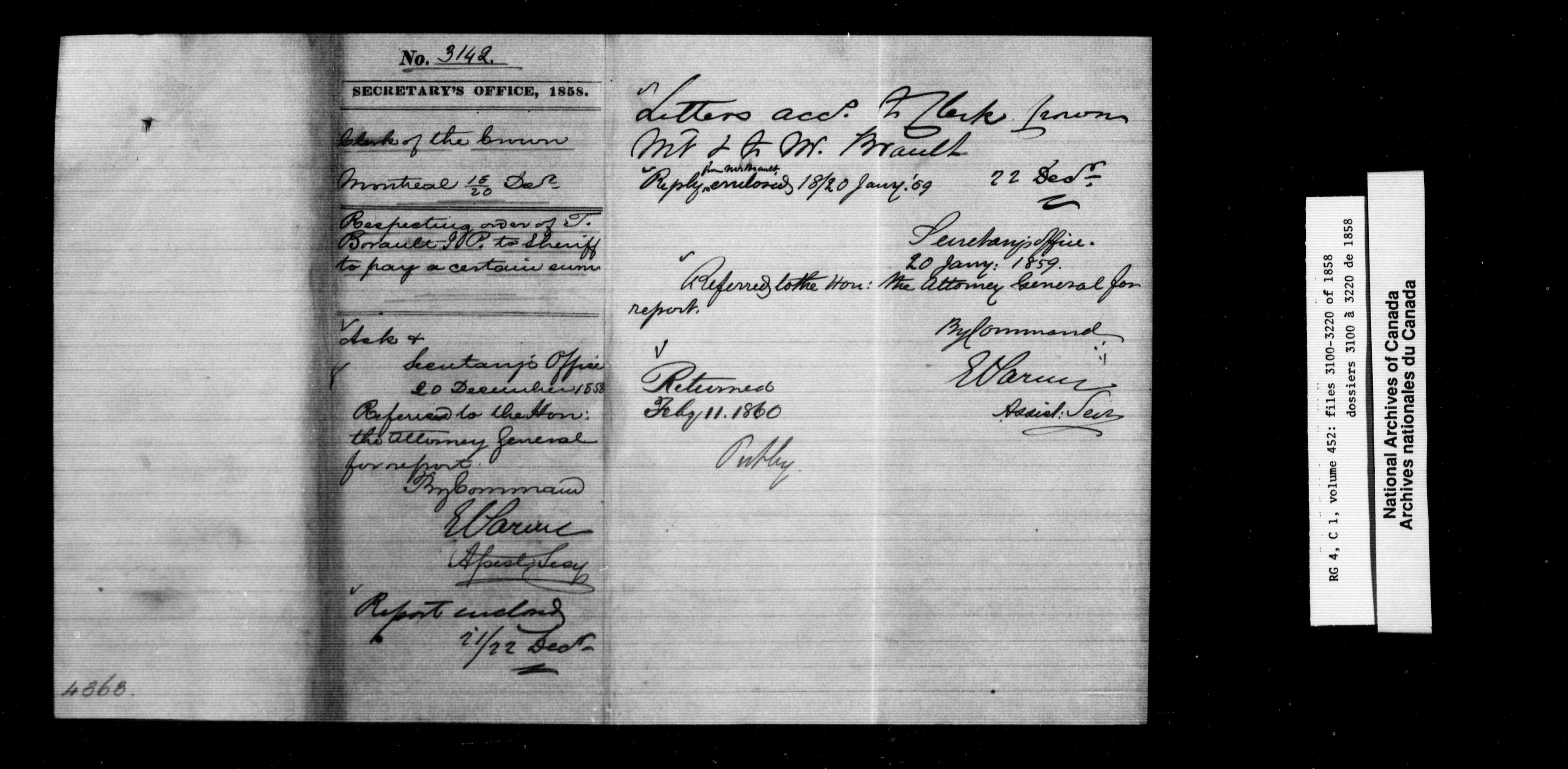 Canada East : Provincial Secretary numbered correspondence files, 1839-1867 - 2727