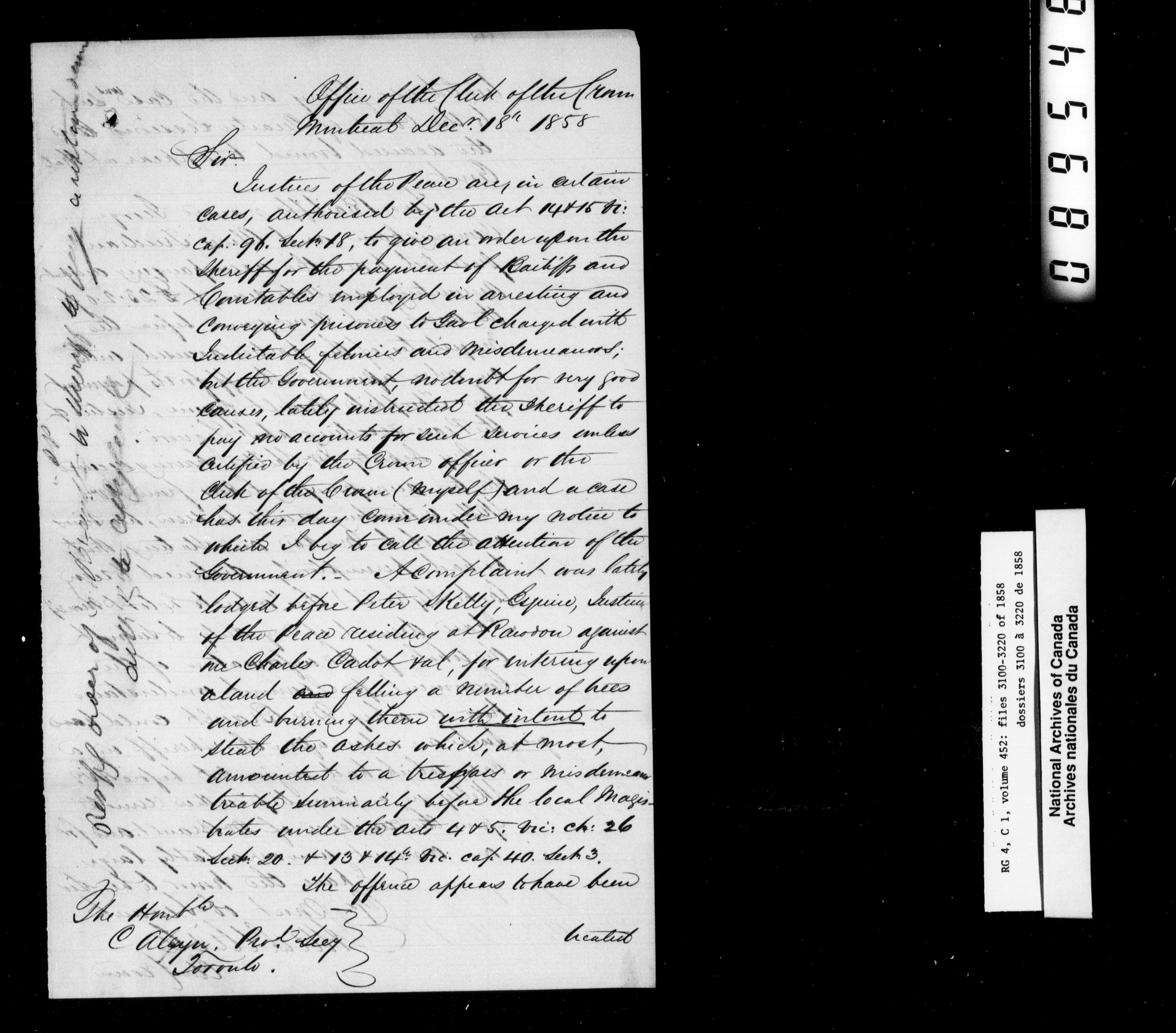 Canada East : Provincial Secretary numbered correspondence files, 1839-1867 - 2727