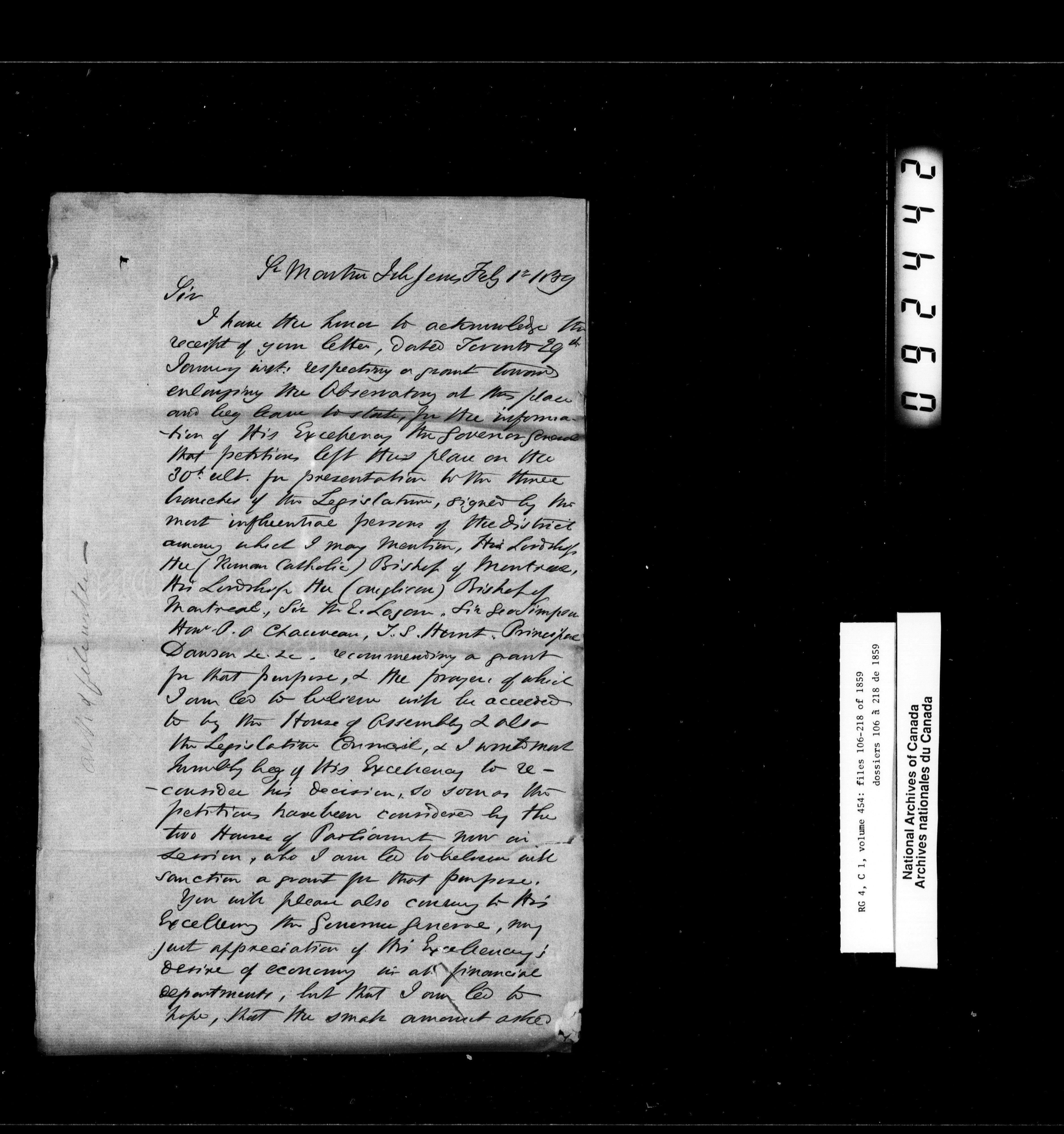 Canada East : Provincial Secretary numbered correspondence files, 1839-1867 - 2729