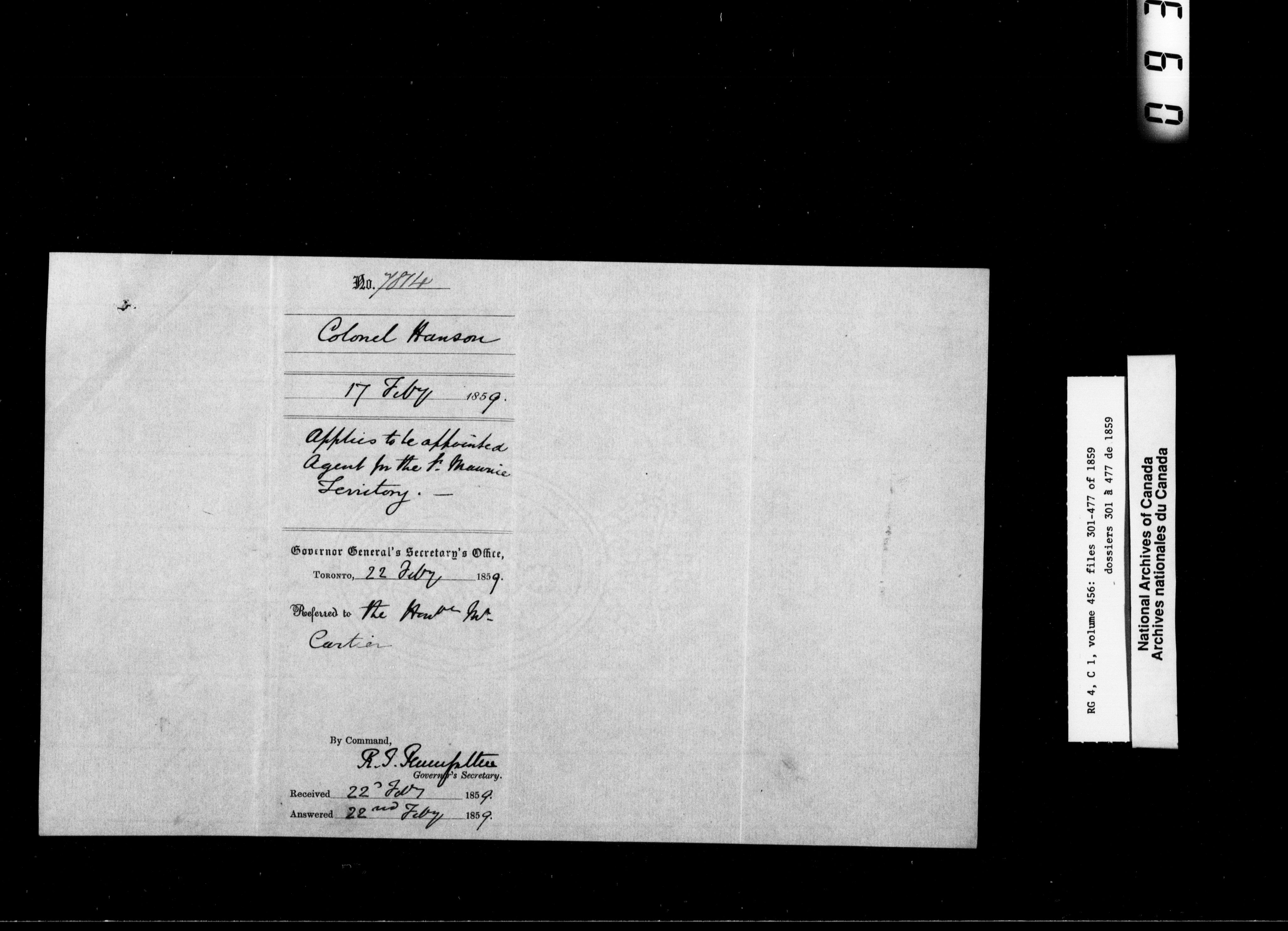 Canada East : Provincial Secretary numbered correspondence files, 1839-1867 - 2730