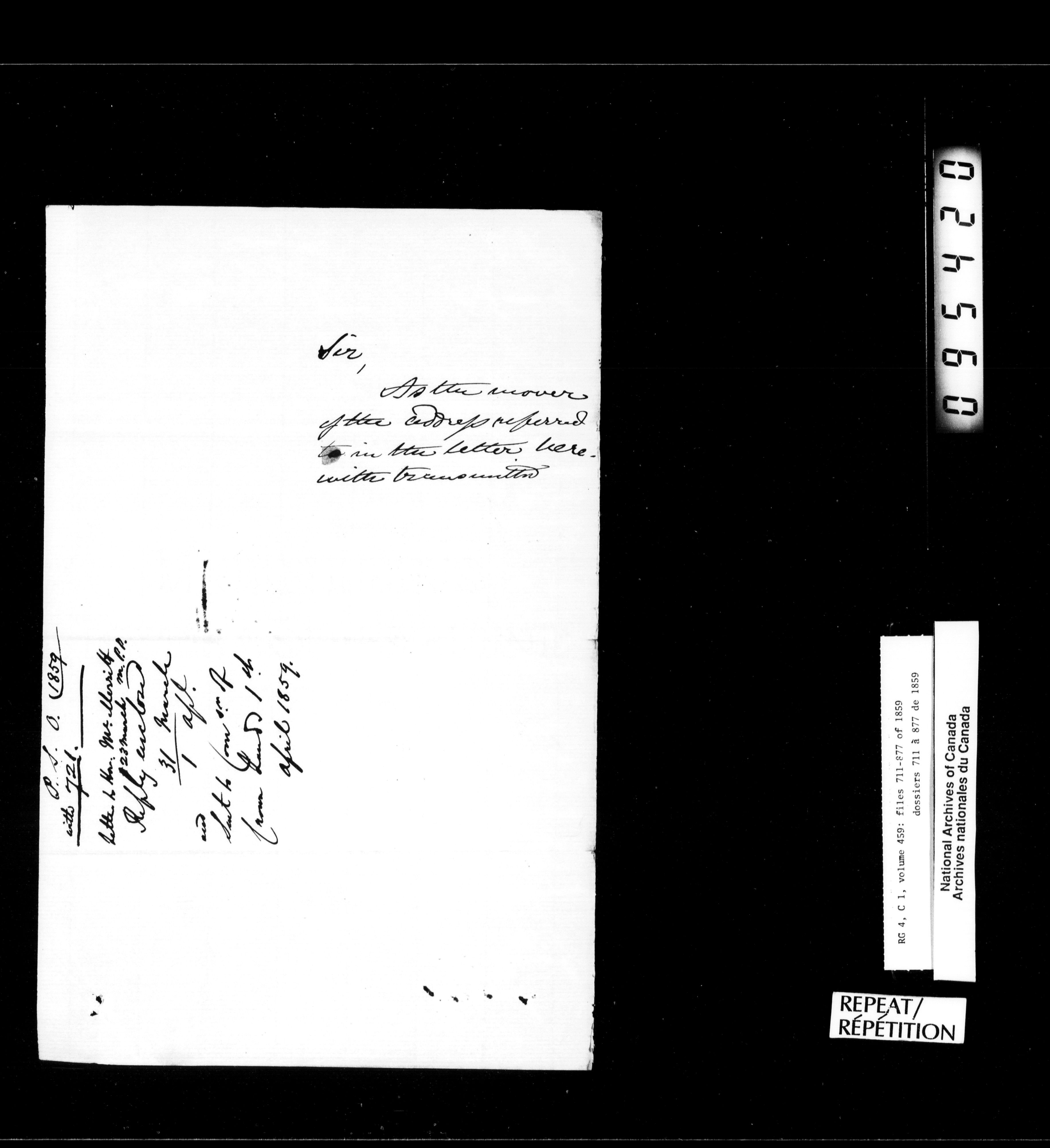 Canada East : Provincial Secretary numbered correspondence files, 1839-1867 - 2731