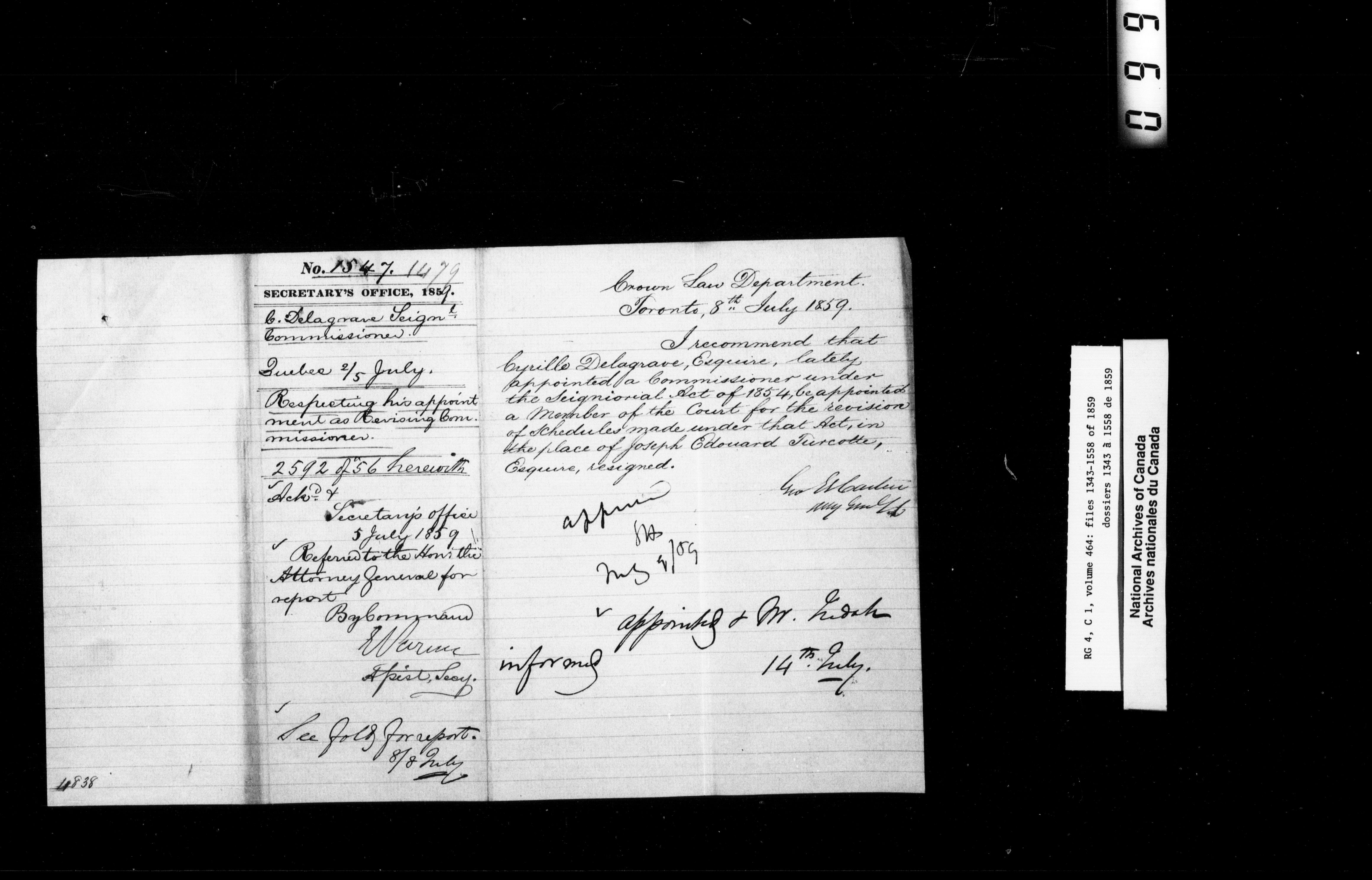 Canada East : Provincial Secretary numbered correspondence files, 1839-1867 - 2734