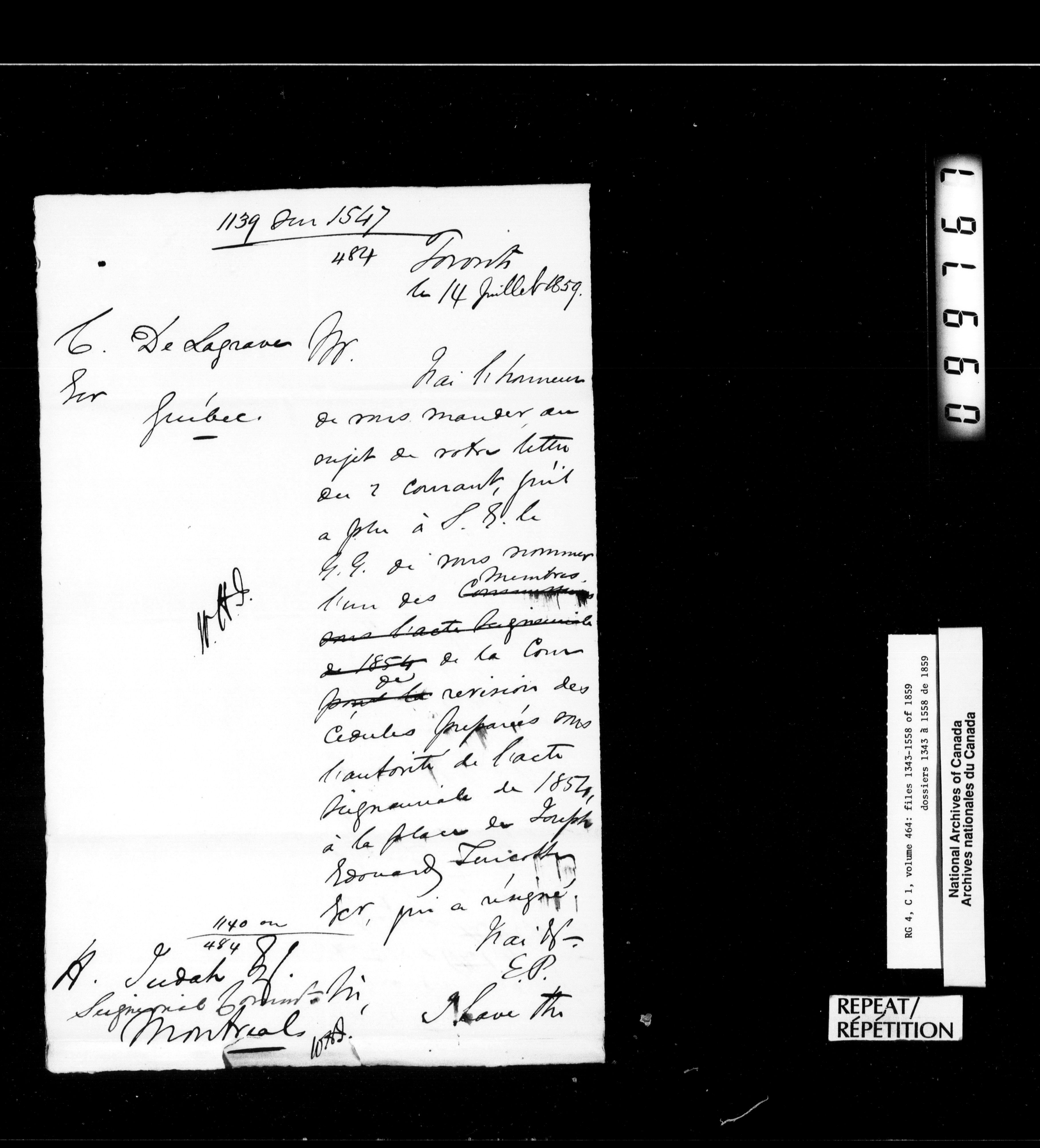 Canada East : Provincial Secretary numbered correspondence files, 1839-1867 - 2734