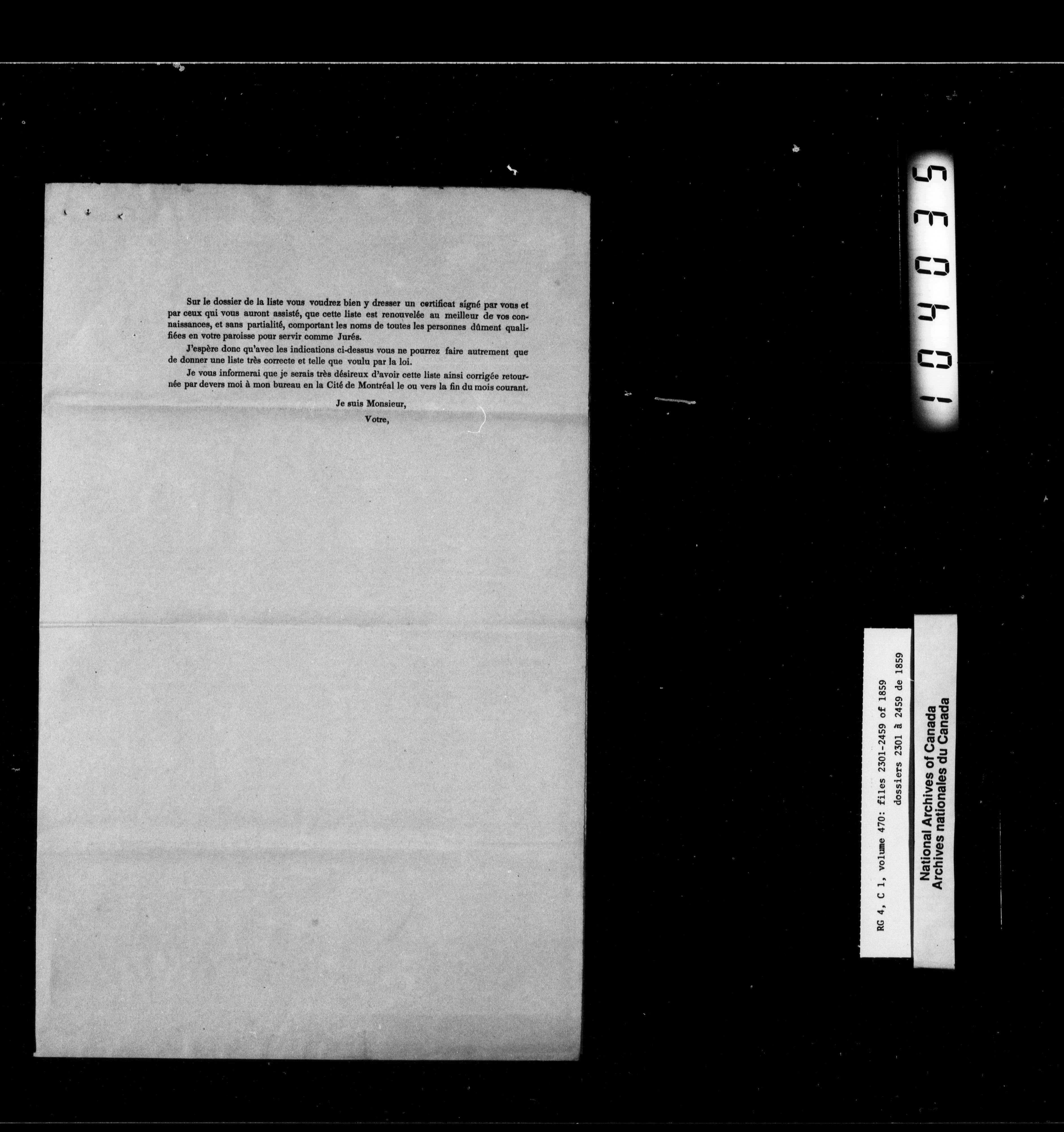 Canada East : Provincial Secretary numbered correspondence files, 1839-1867 - 2736