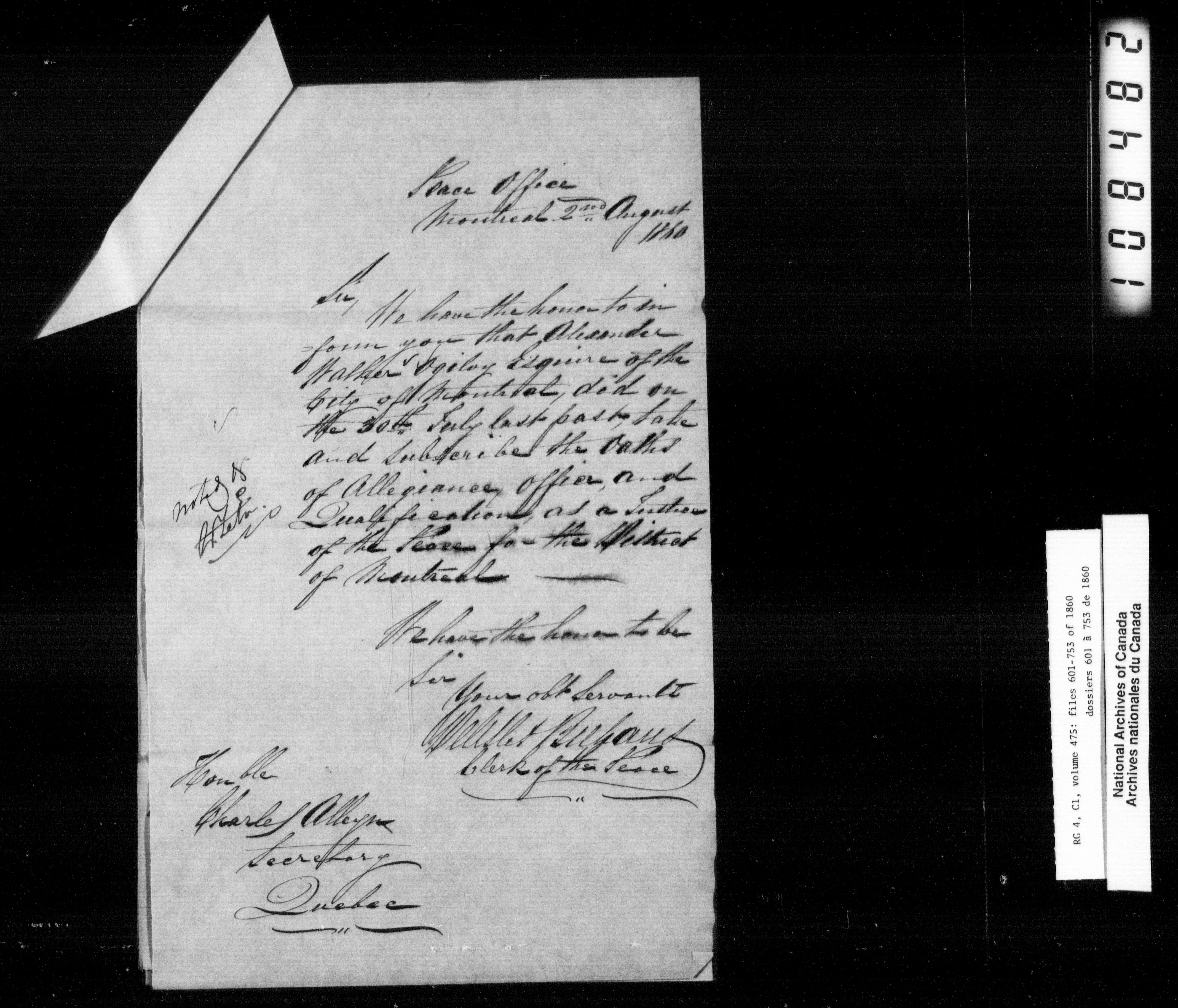 Canada East : Provincial Secretary numbered correspondence files, 1839-1867 - 2739