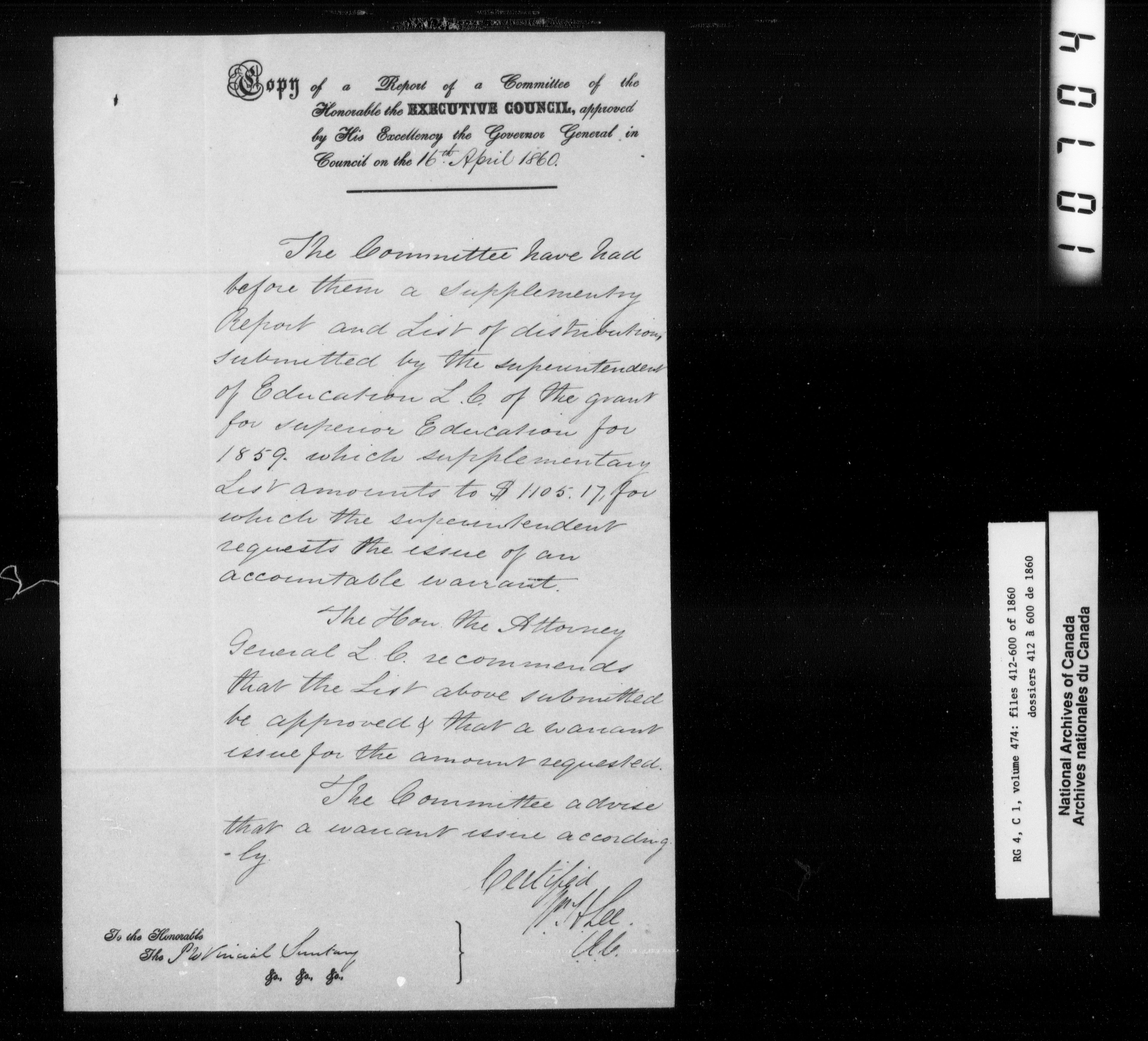 Canada East : Provincial Secretary numbered correspondence files, 1839-1867 - 2739