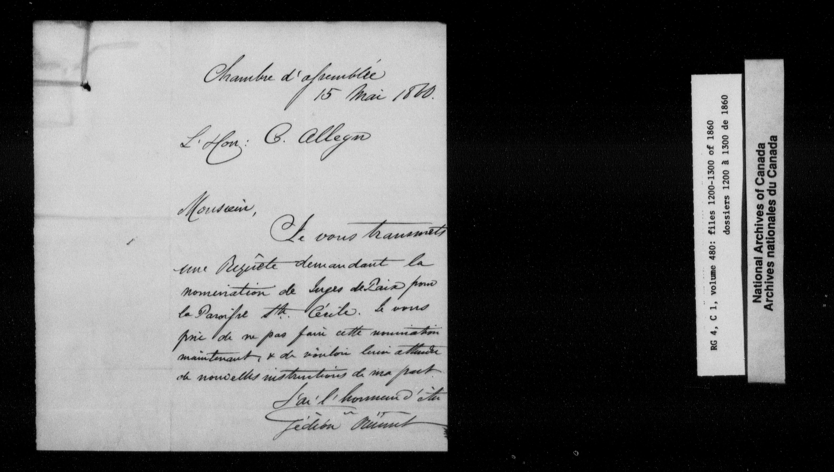 Canada East : Provincial Secretary numbered correspondence files, 1839-1867 - 2741