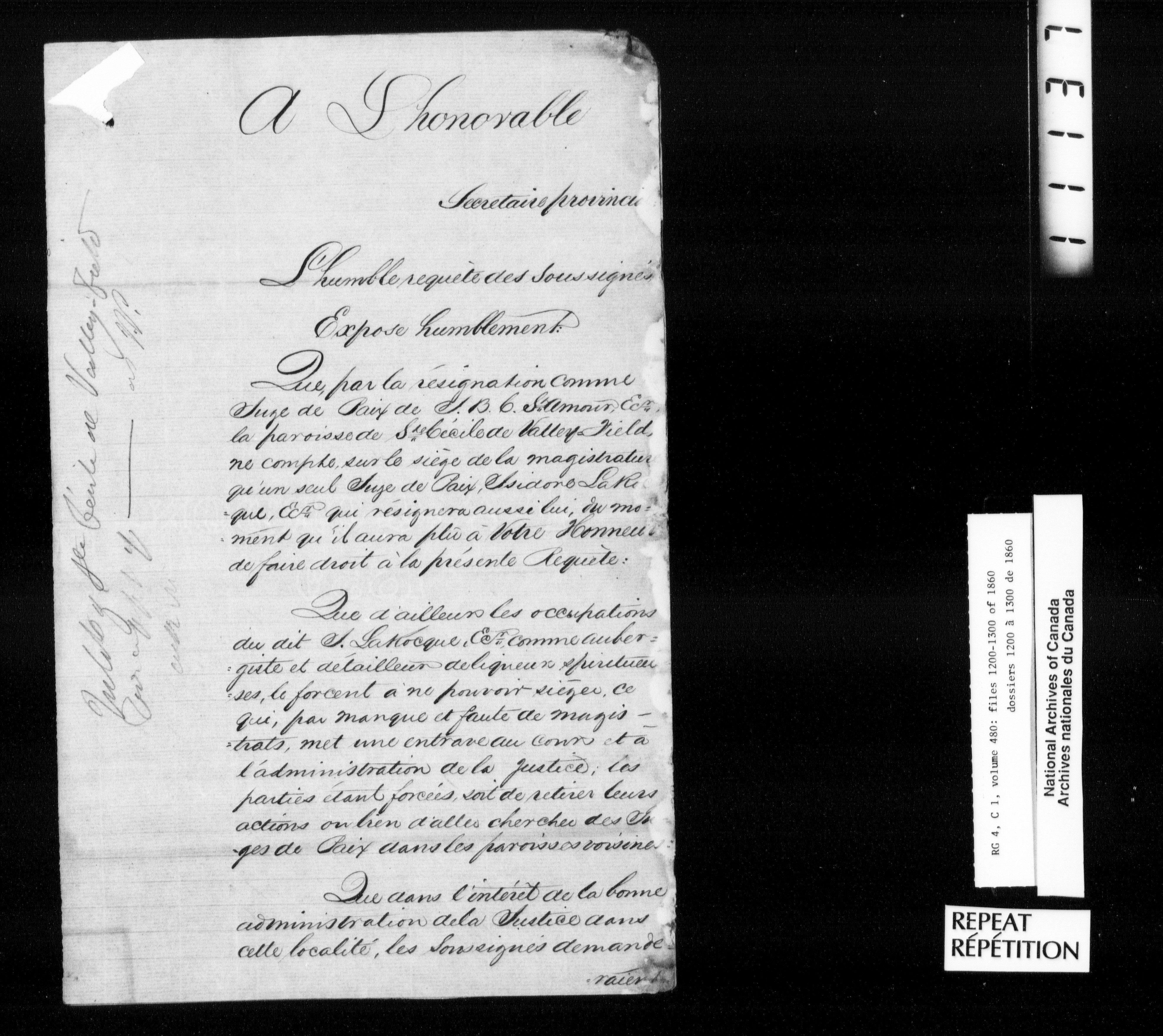 Canada East : Provincial Secretary numbered correspondence files, 1839-1867 - 2741