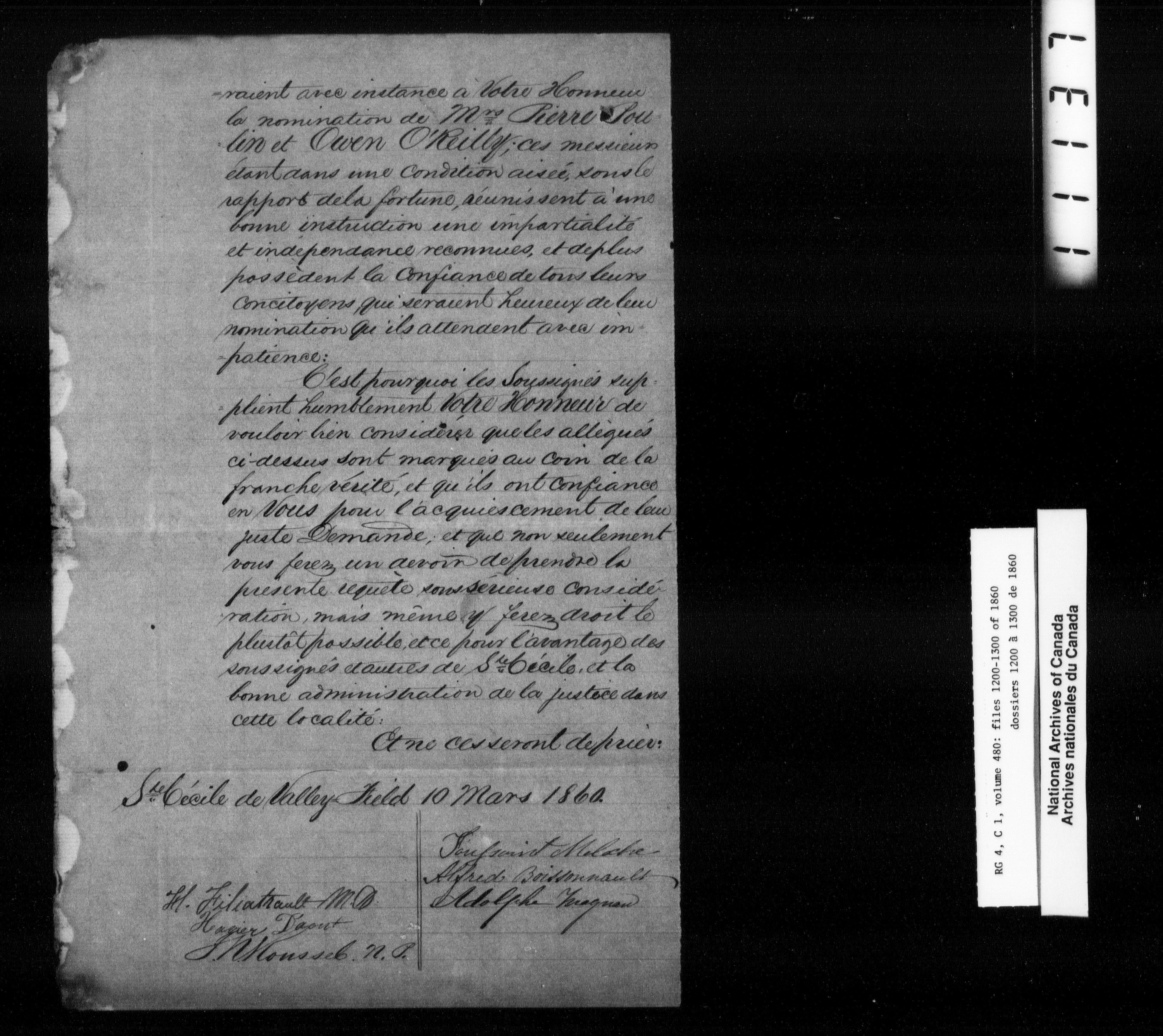 Canada East : Provincial Secretary numbered correspondence files, 1839-1867 - 2741