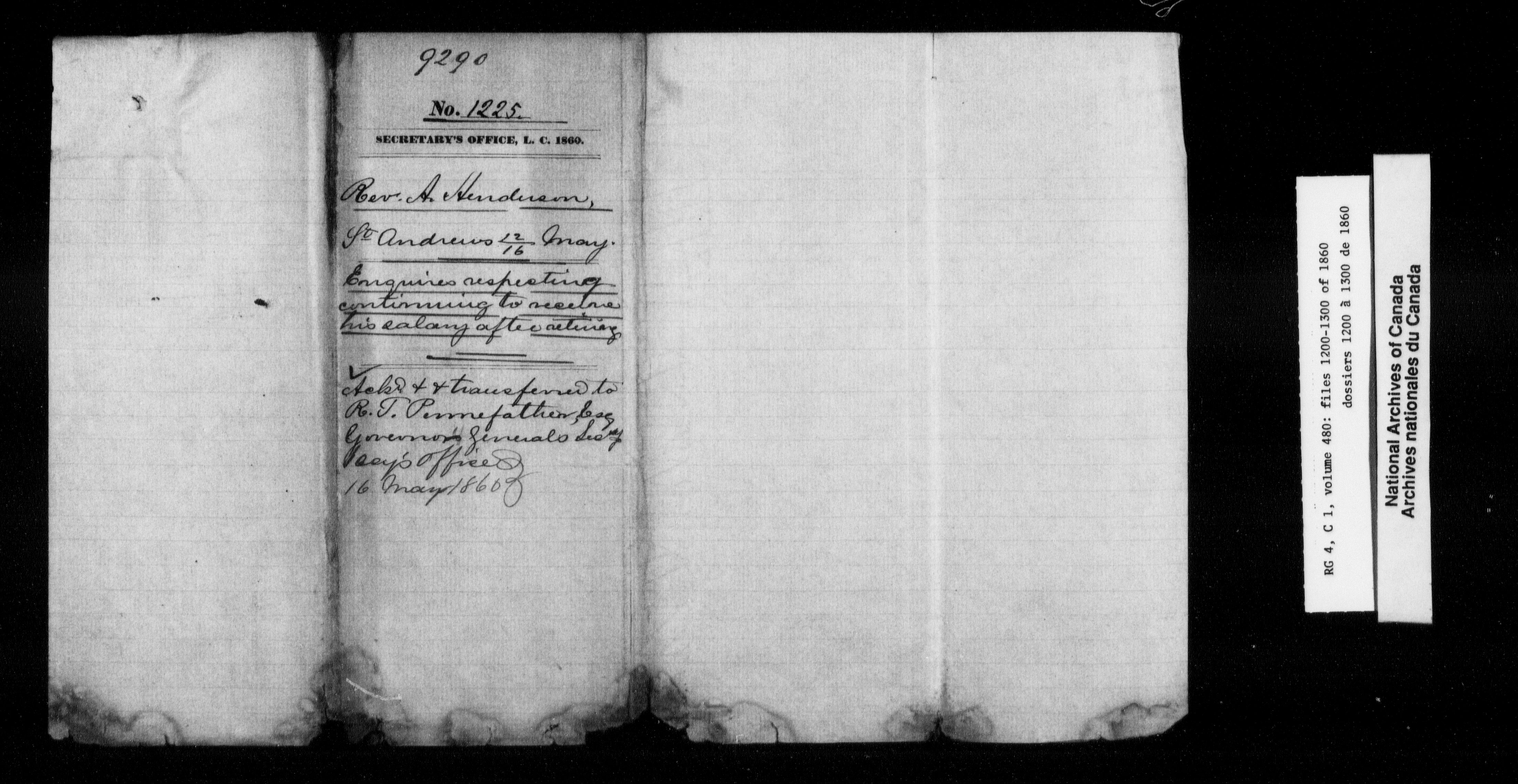 Canada East : Provincial Secretary numbered correspondence files, 1839-1867 - 2741