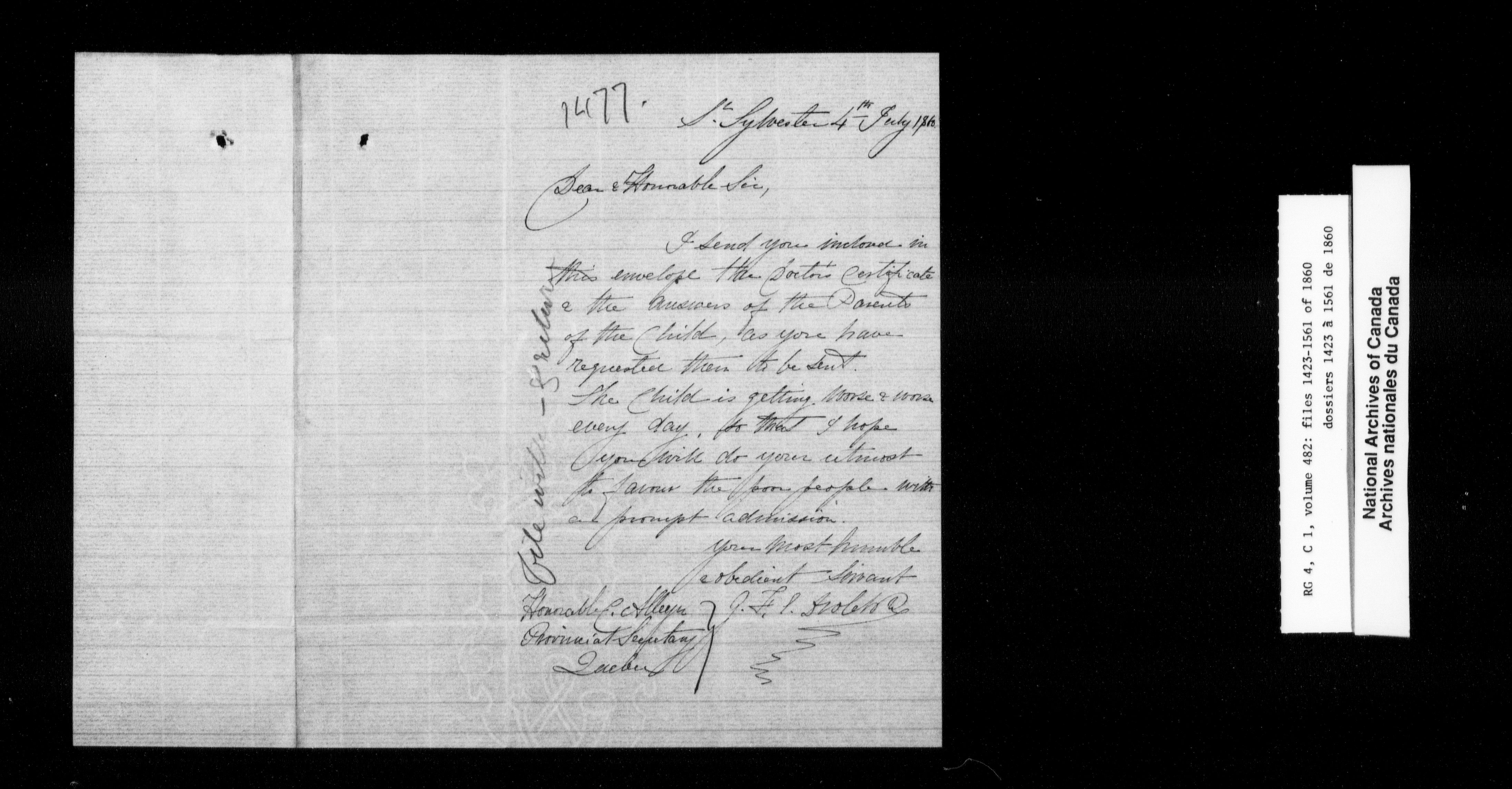 Canada East : Provincial Secretary numbered correspondence files, 1839-1867 - 2742