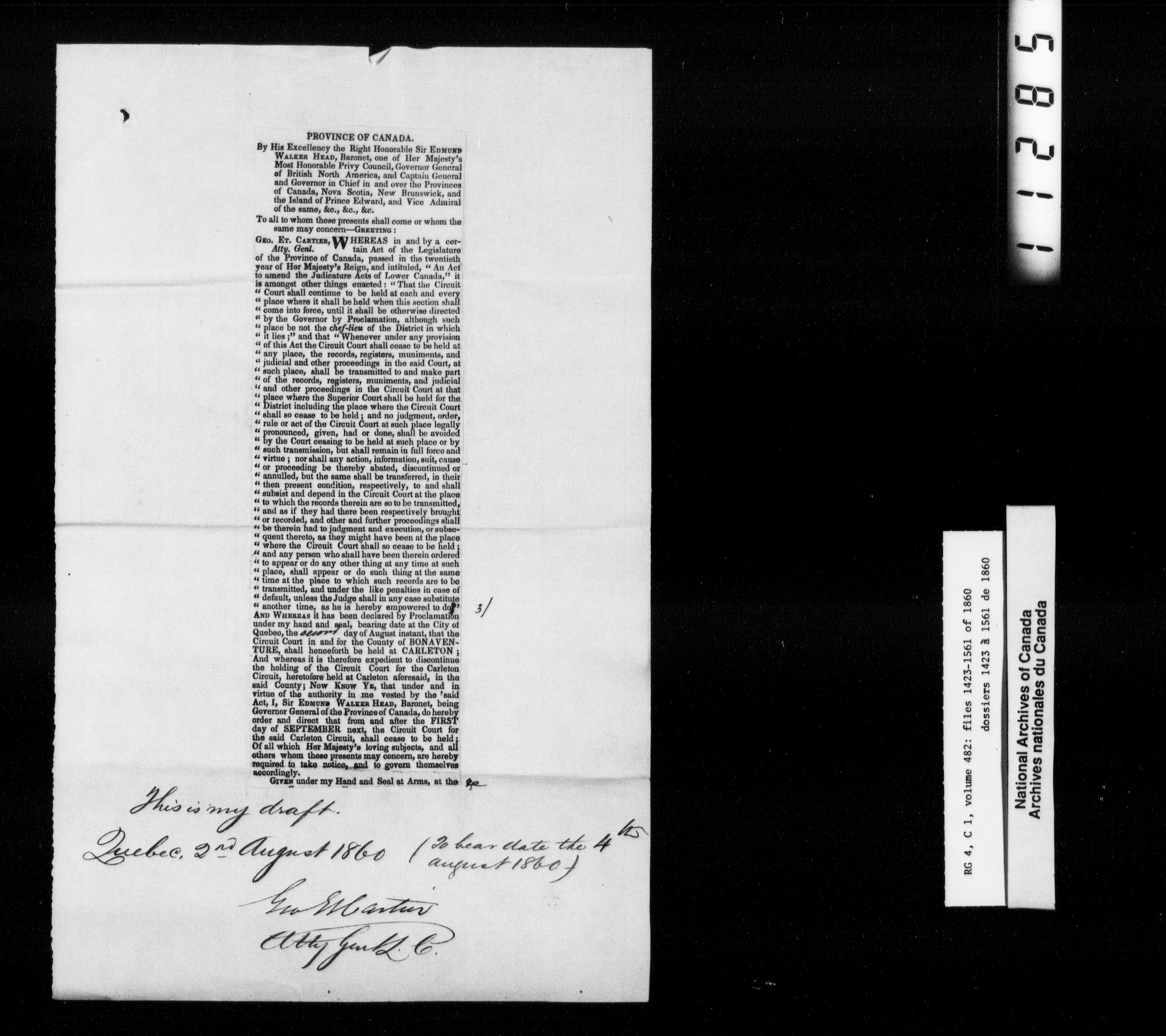 Canada East : Provincial Secretary numbered correspondence files, 1839-1867 - 2742