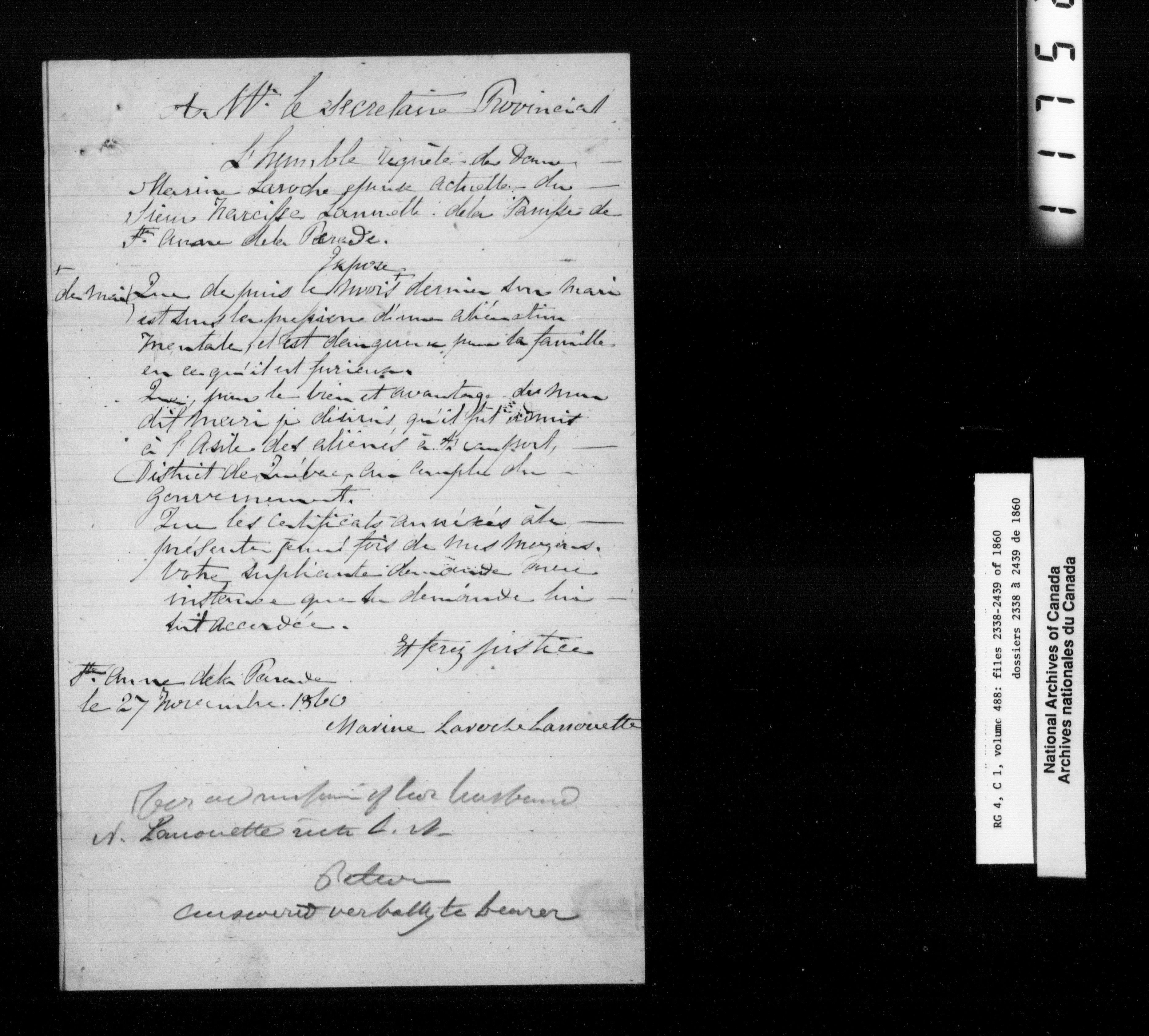 Canada East : Provincial Secretary numbered correspondence files, 1839-1867 : H-2746