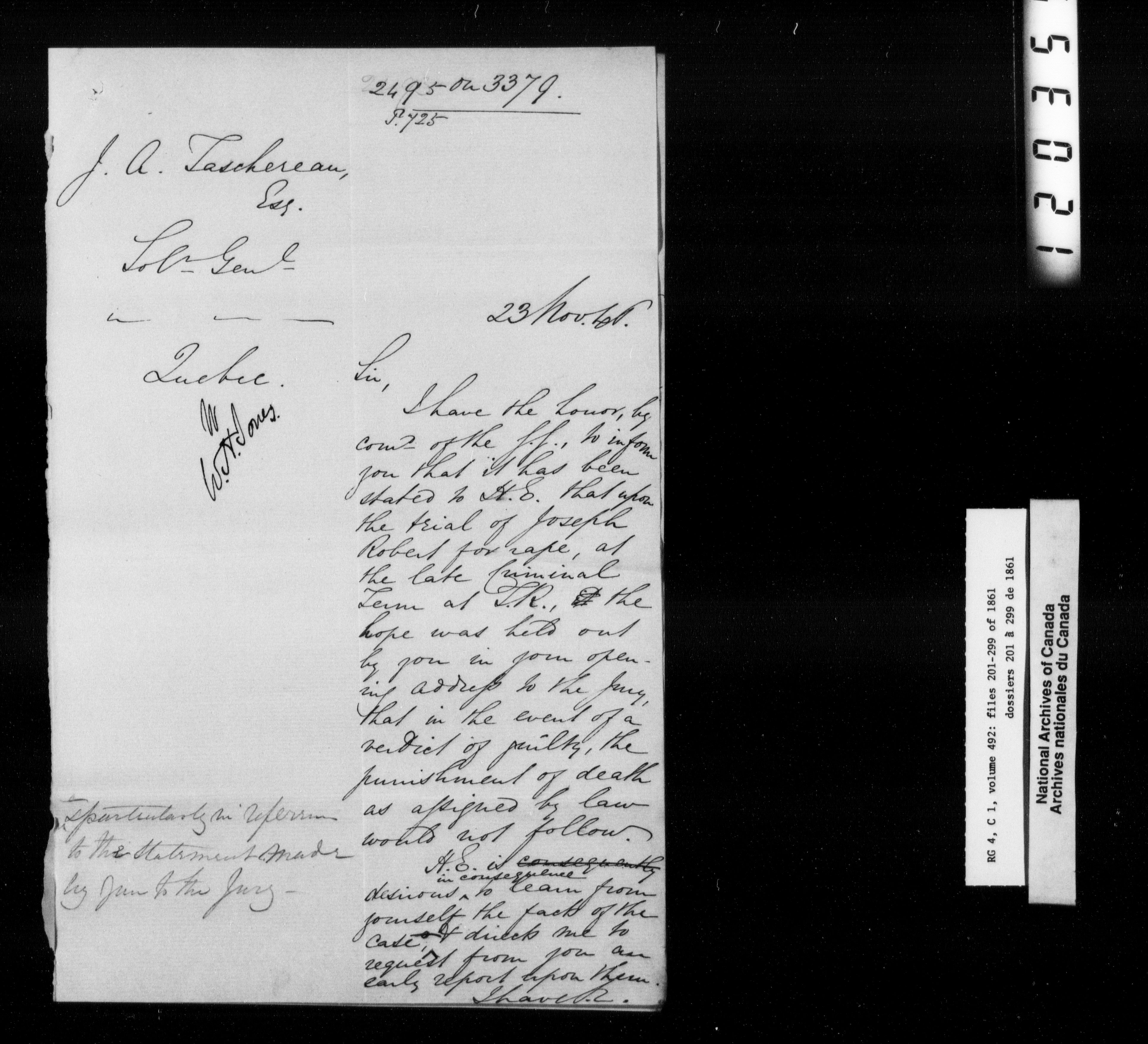 Canada East : Provincial Secretary numbered correspondence files, 1839-1867 - 2747