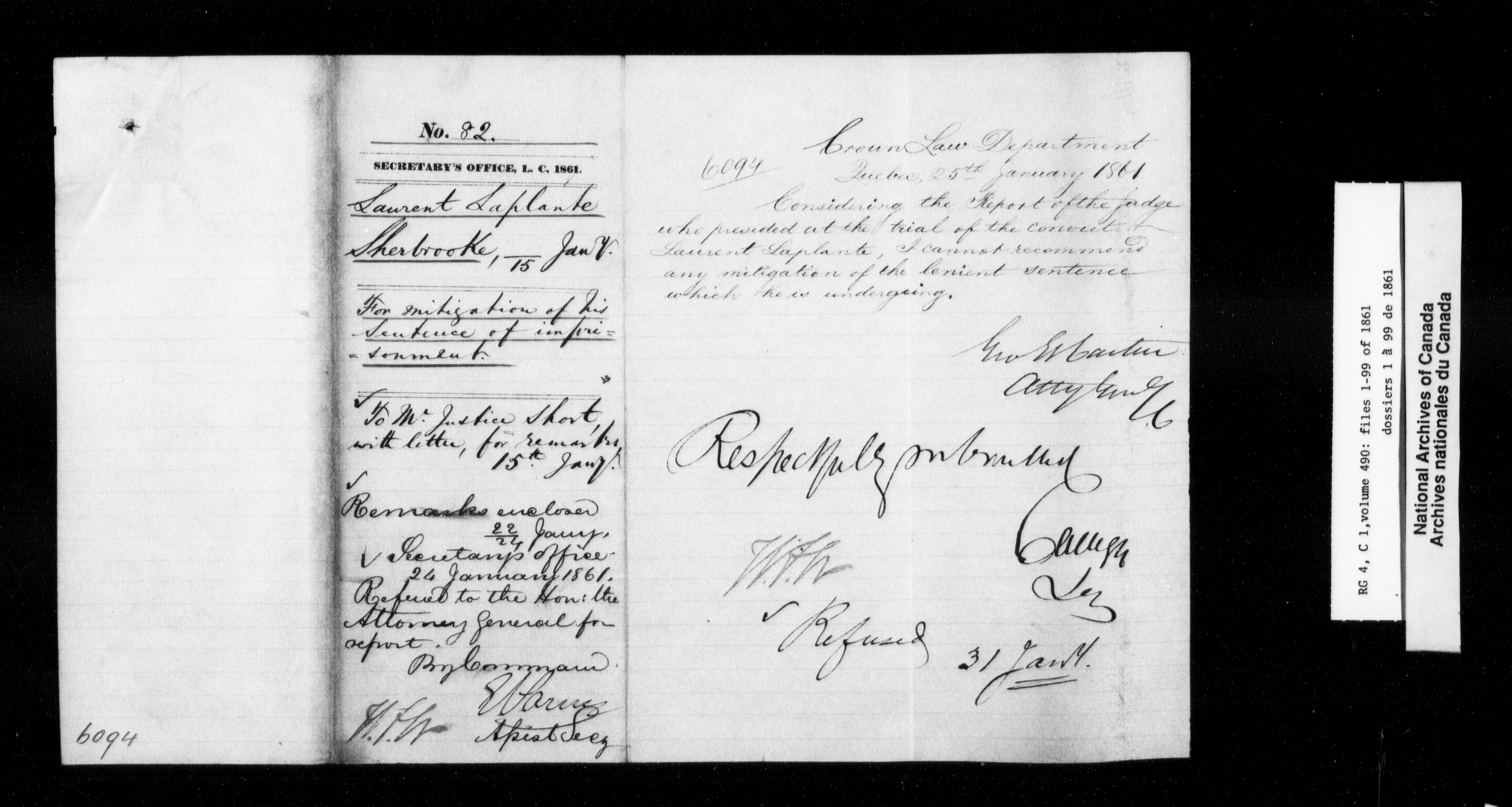 Canada East : Provincial Secretary numbered correspondence files, 1839-1867 - 2747