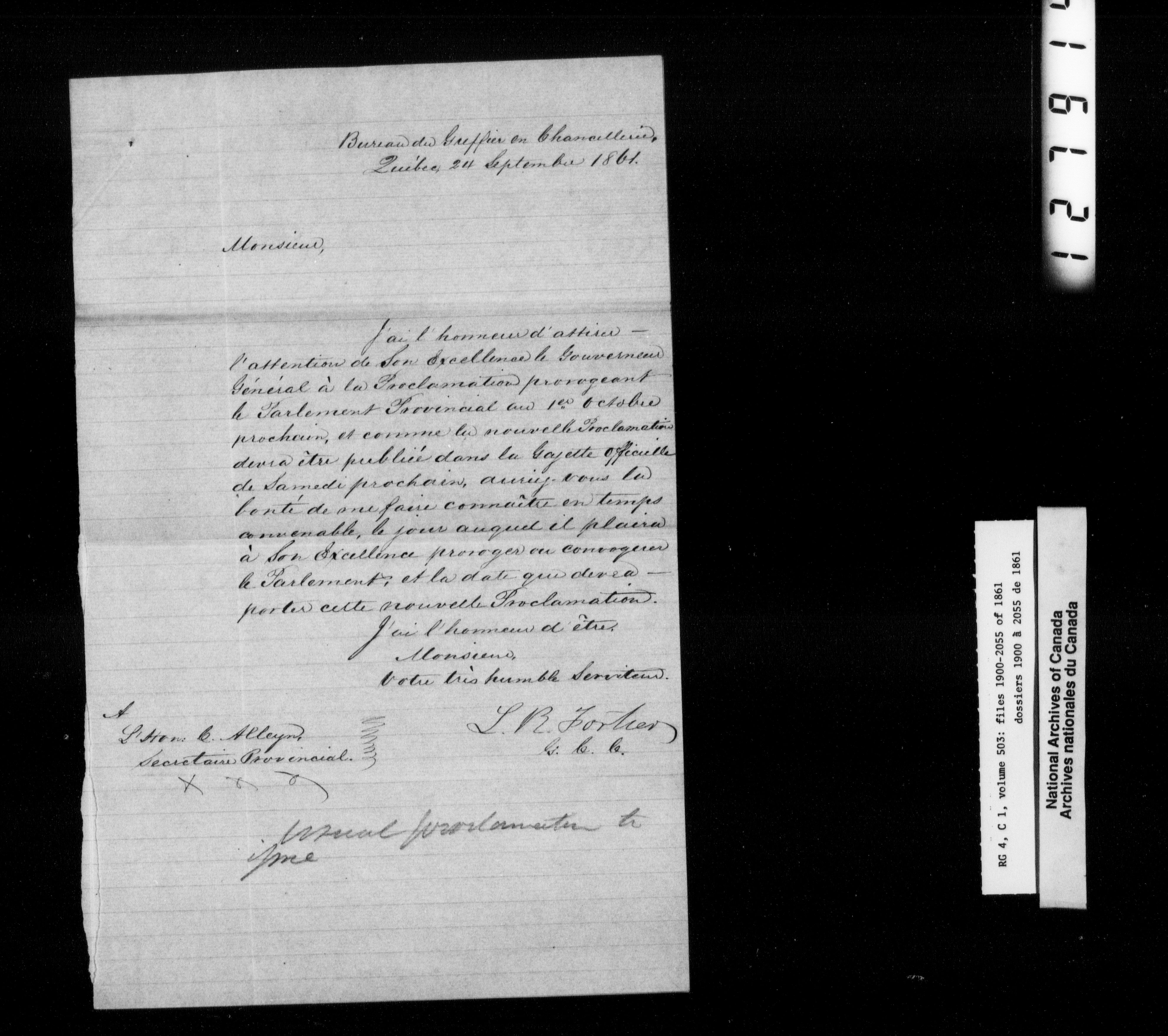 Canada East : Provincial Secretary numbered correspondence files, 1839-1867 - 2752