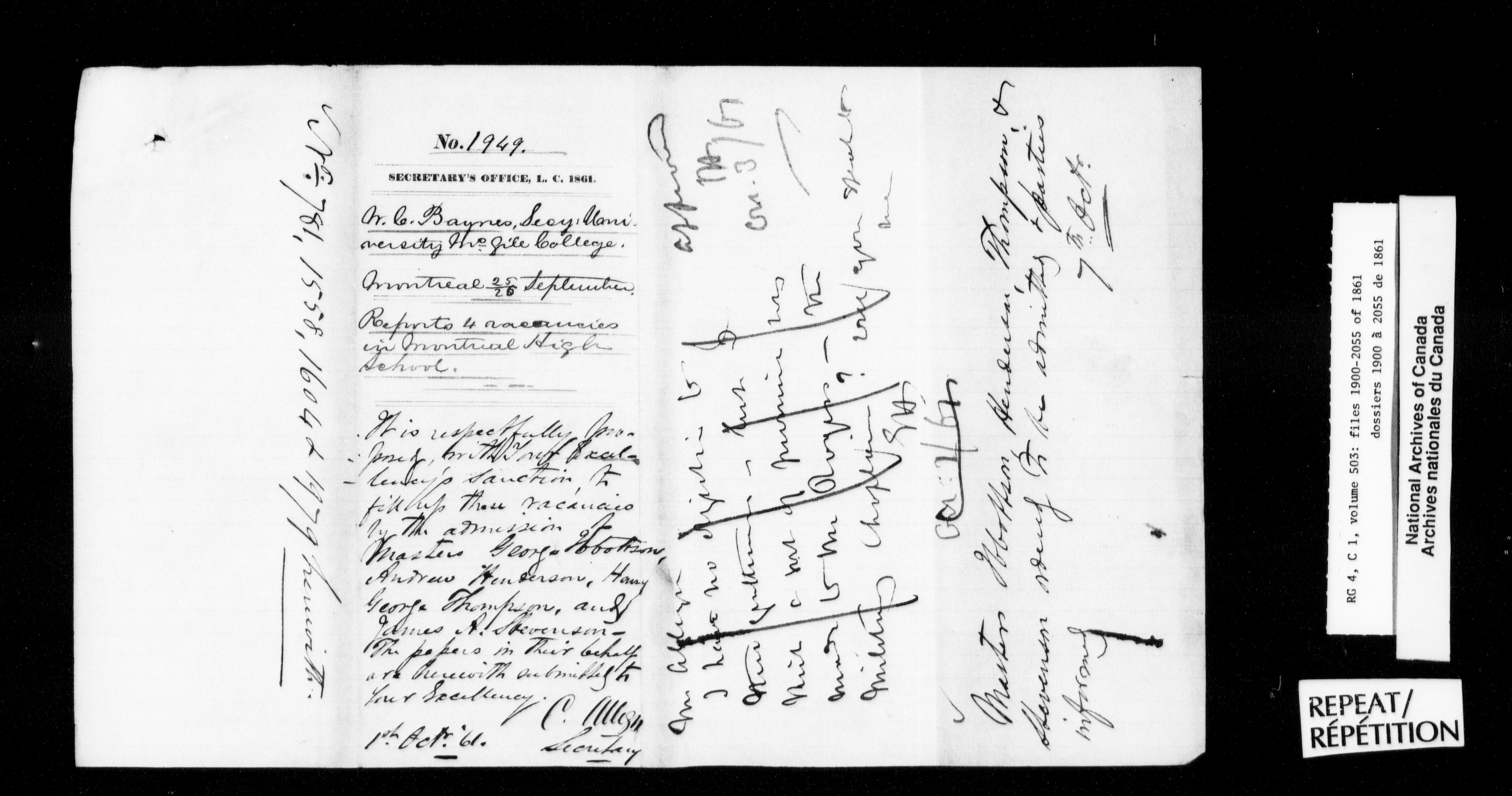 Canada East : Provincial Secretary numbered correspondence files, 1839-1867 - 2752