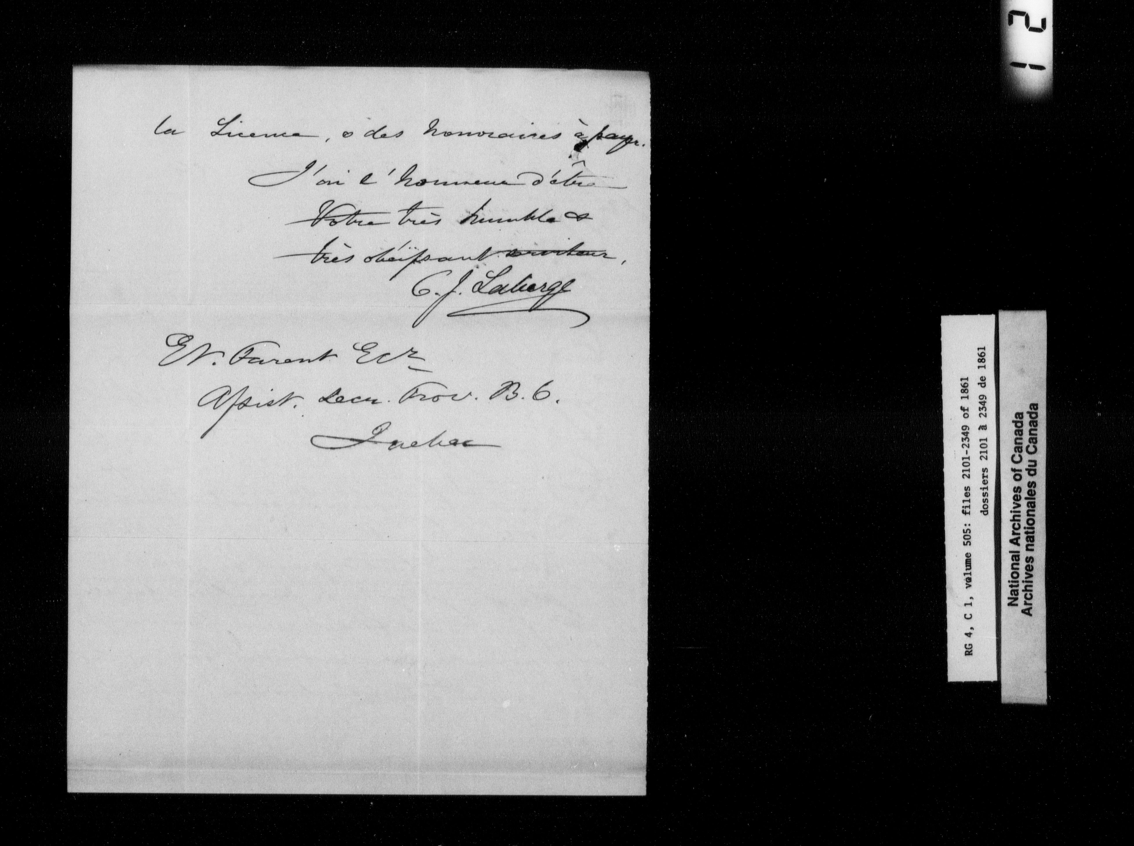 Canada East : Provincial Secretary numbered correspondence files, 1839-1867 - 2753