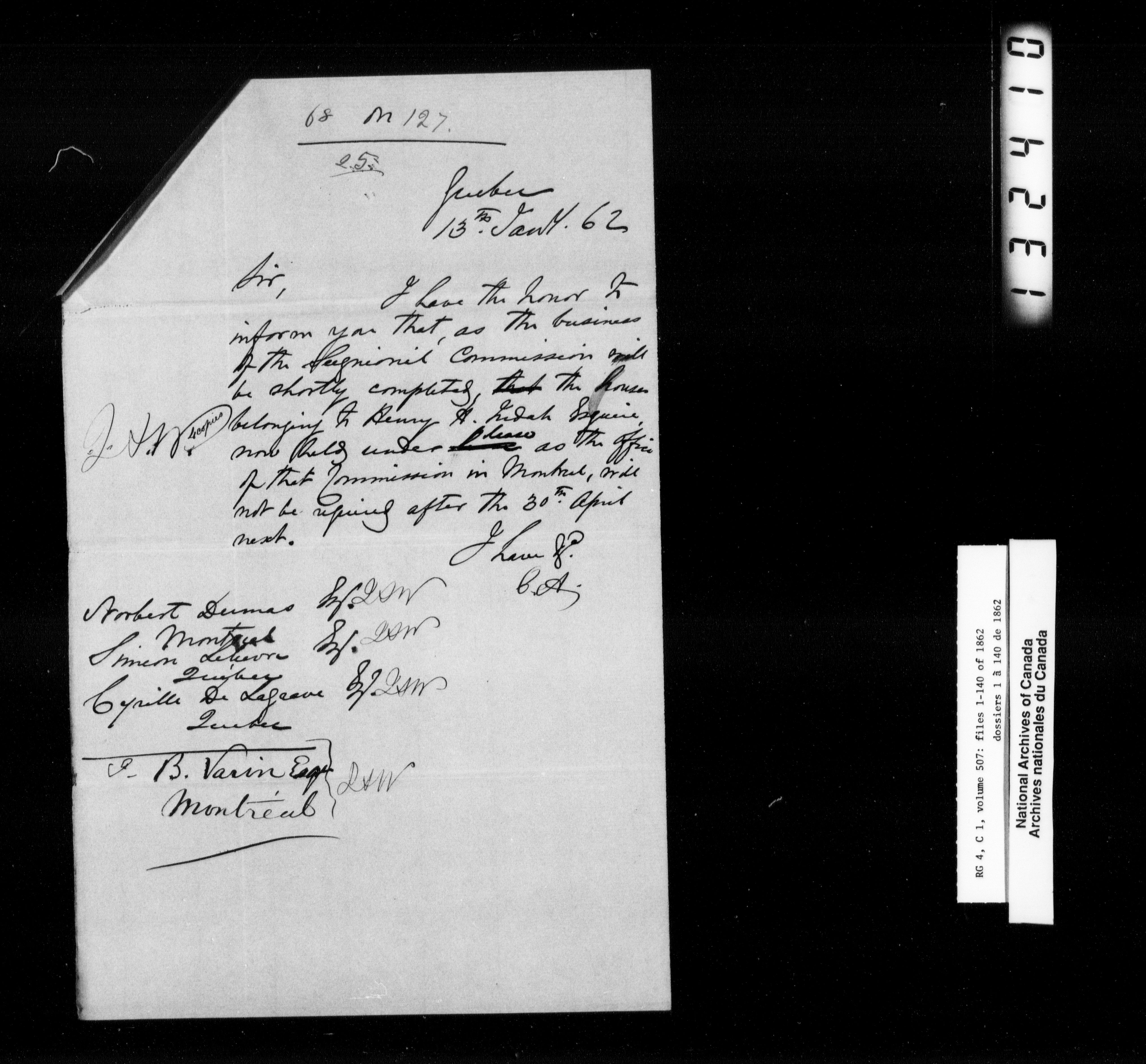 Canada East : Provincial Secretary numbered correspondence files, 1839-1867 - 2756